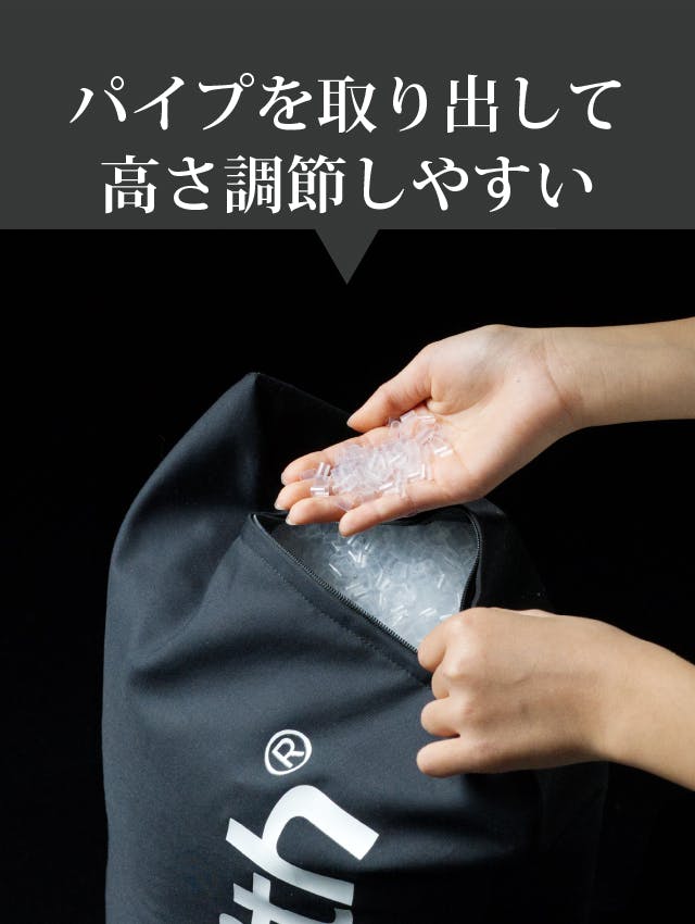 枕サイドのファスナーを開けて中のパイプを取りだして、簡単に高さが調節できます。