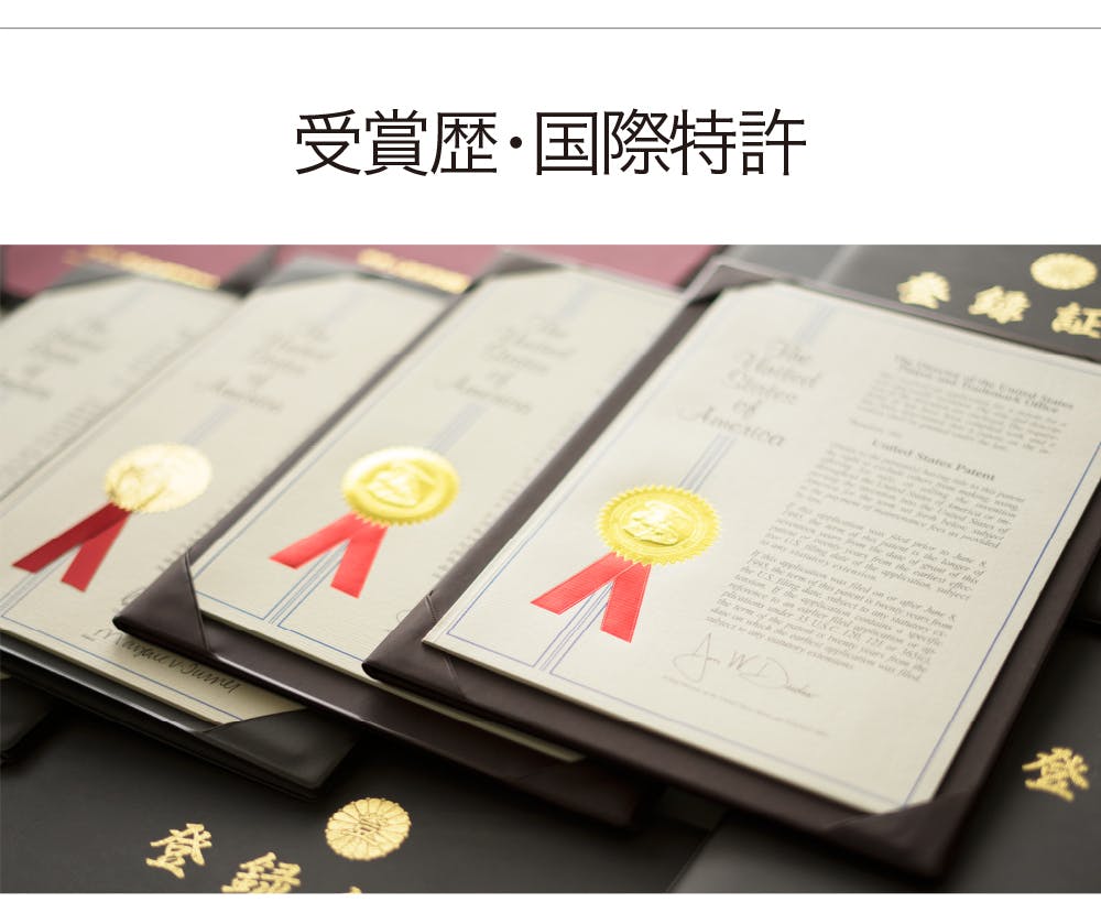 原材料の製造や製品について、数々の国際特許を取得しています。