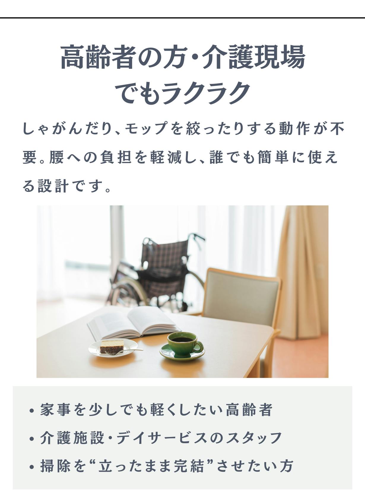 Mopandaの製品は、家庭用だけでなく、ペット・子育て・介護・店舗など、 さまざまなシーンで活躍しています。