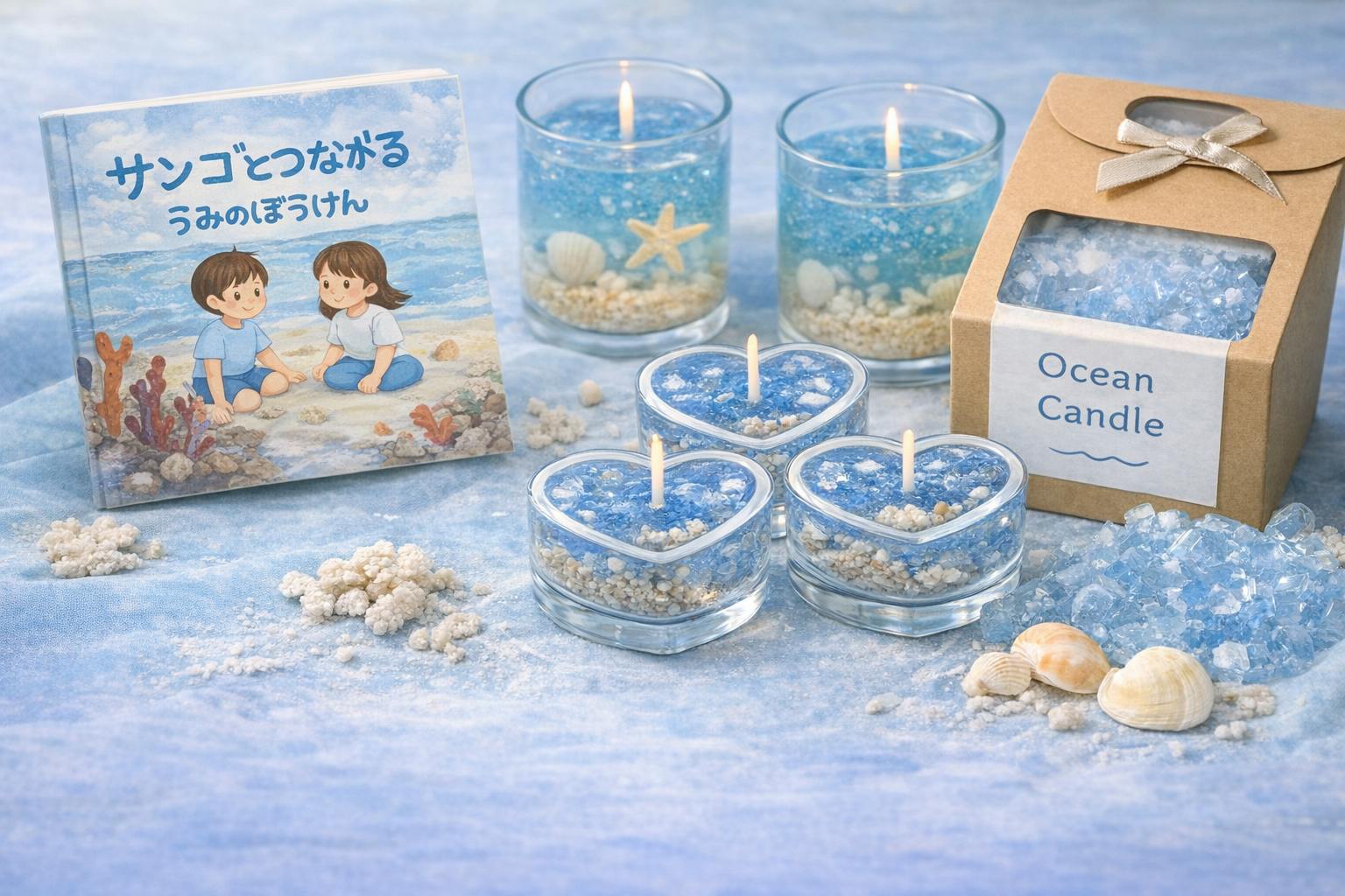キャンドルの灯りには、人と人をつなぐ力があります。その小さな光に“海を思い出す仕掛け”を込めました。