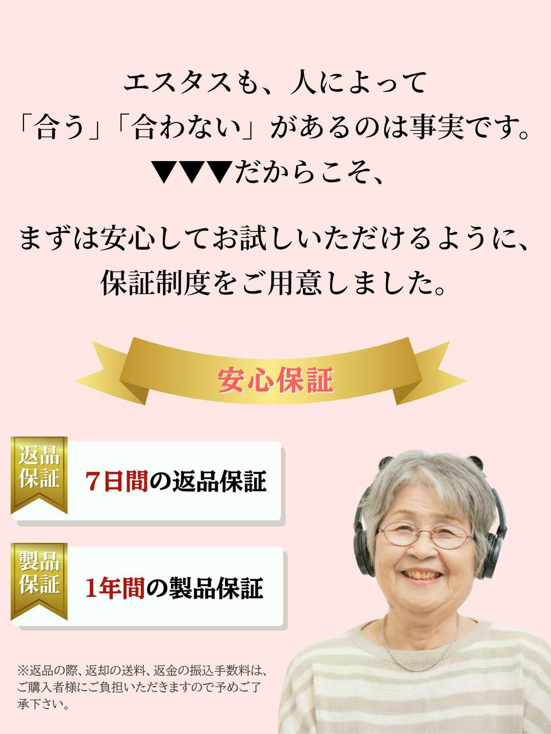 集音器エスタスは、すべての方に合うとは限りません。そのため、聴こえにご満足いただけなかった場合でも安心してお試しいただけるよう、返品保証を設けています。
