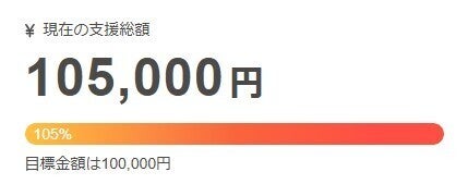 このたび、皆さまからの温かいご支援により、ついに目標達成率100%を突破いたしました!心より感謝申し上げます。一人ひとりのご支援や応援の言葉が、私たちの大きな力になっています。本当にありがとうございます!皆さまからいただいた応援を胸に、最後まで全力で走り抜けますので、引き続きのご支援・ご声援をどうぞよろしくお願いいたします!