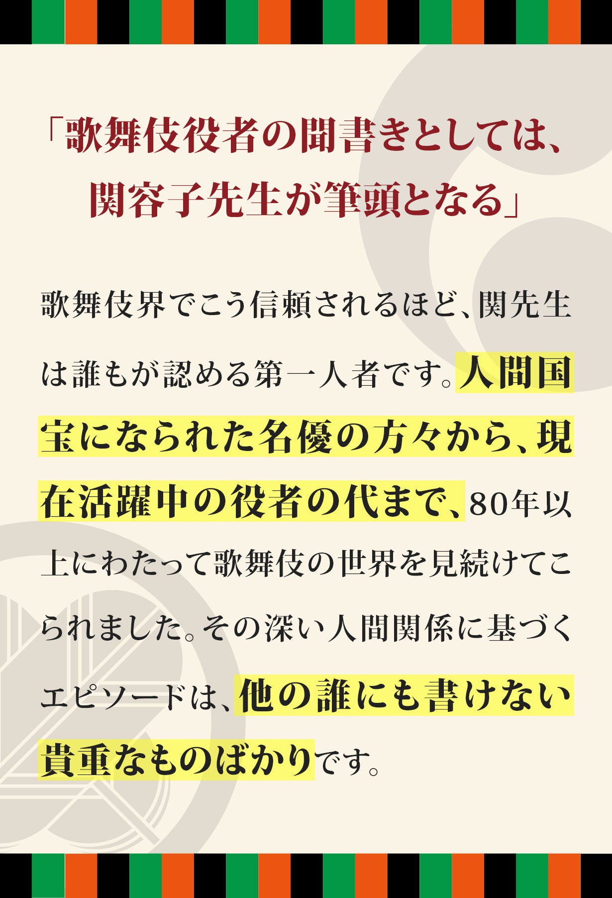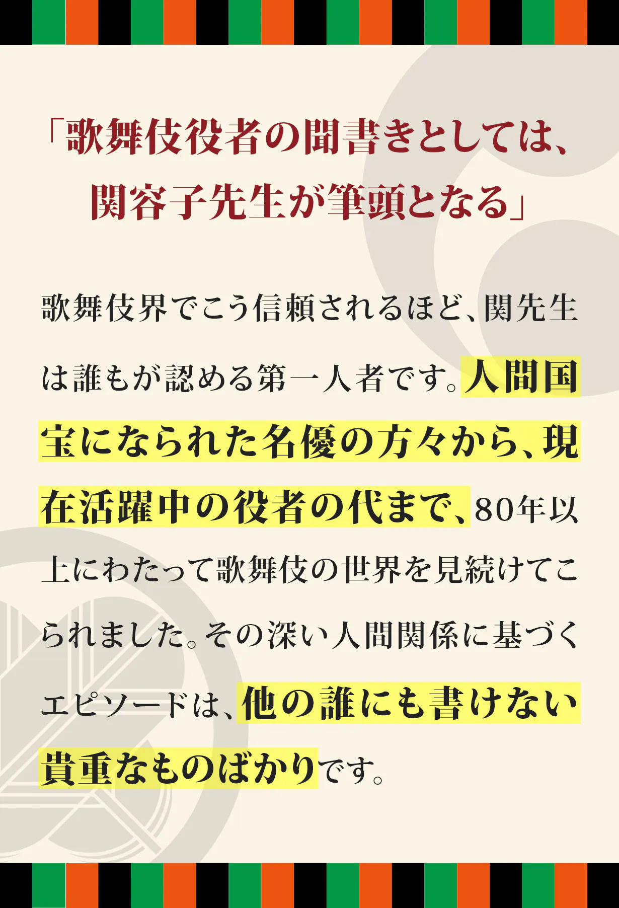 他の歌舞伎関連書籍では、こうした方々の声が取り上げられることは極めて稀です。