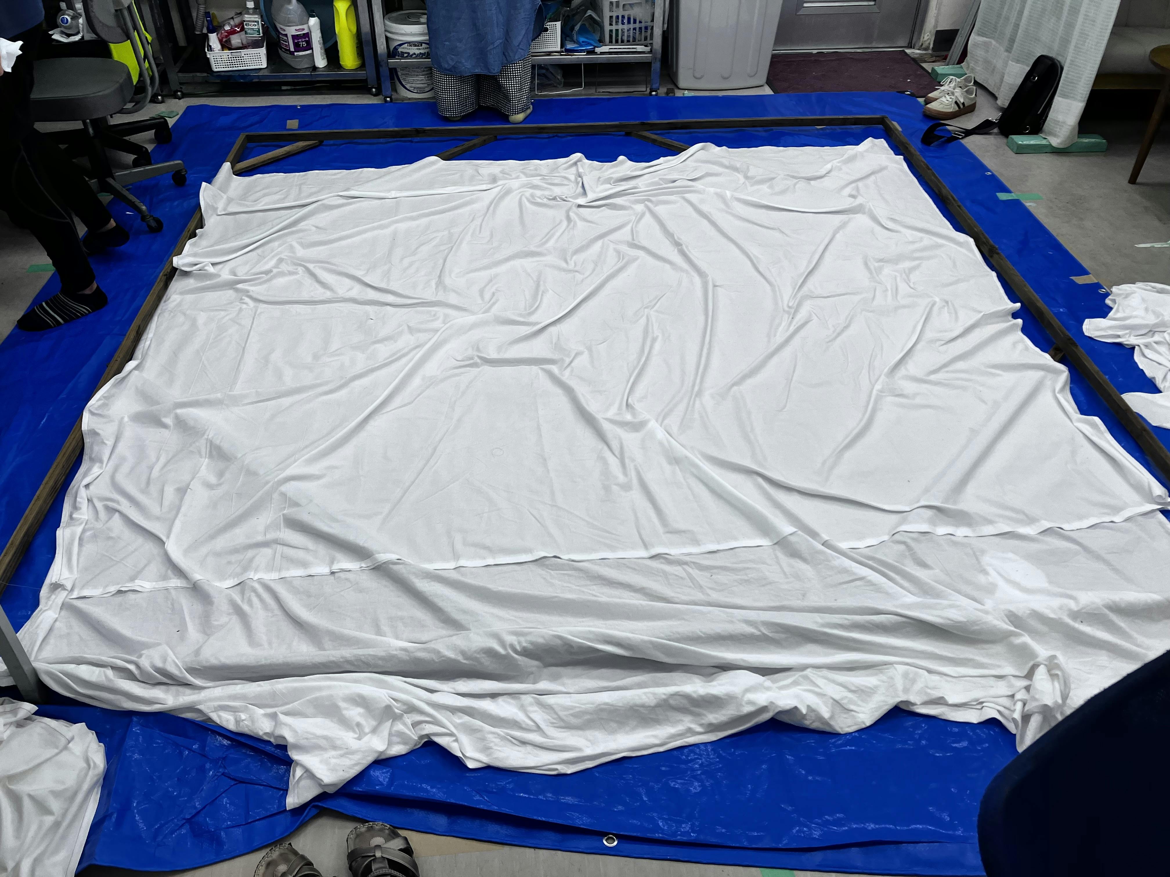 シーツの縫合が完成すると、縦横2.5mのサイズになります。