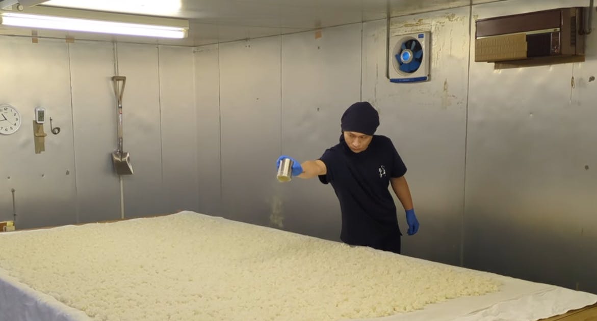 2025/12/10 11:30本日は、製麹(せいぎく)の種切(たねきり)作業の日でした。日本酒業界には「一麹、二酛、三造り」という言葉があるほど、酒造りで最も大事とされる麹。蒸米に麹菌を繁殖させるために種麹(麹菌の胞子を集めたもの)を振りかける作業が「種切」です。種切りを行う杜氏の姿は、口をつぐみ、息をすることさえ禁じているようで、ムロの中は緊張感に包まれ、神聖な儀式にも見えるほどです。今年は新たな取り組みとして、「扁平精米」した酒米を使った日本酒造りにも挑戦しています。扁平精米とは、米の厚さ方向を均等に削ることで、米表面に多く分布するタンパク質を効率よく削ることが可能な精米方法で、酒質の向上が期待されます。設備・経費など限られた中で、様々な取り組みを先行して実施していますが、皆様のご支援が継続できる力になります。支援者の皆さまに、こうした「新章に向けた磨き上げの進捗」も知っていただけたら嬉しいです。これからも、水口酒造の日々を少しずつご紹介してまいります。どうぞ引き続き応援よろしくお願いいたします! もっと見る