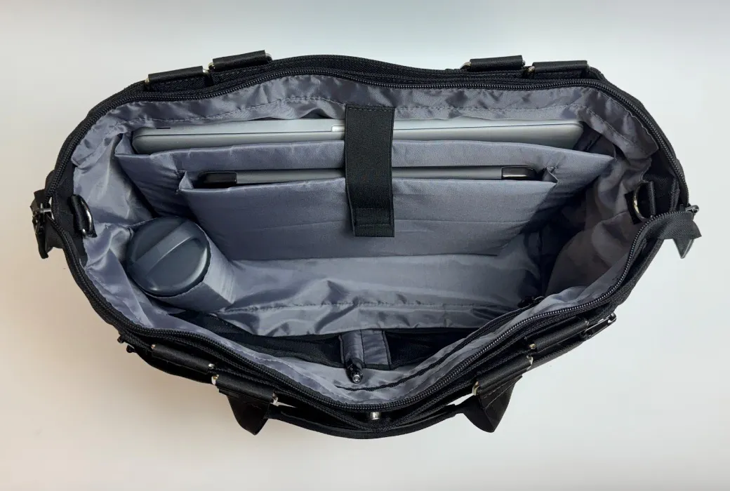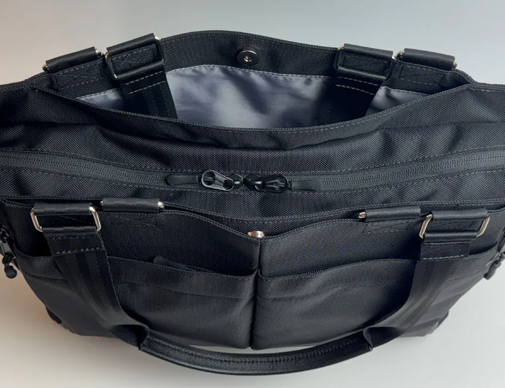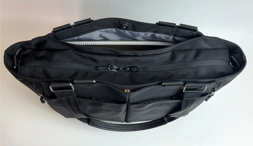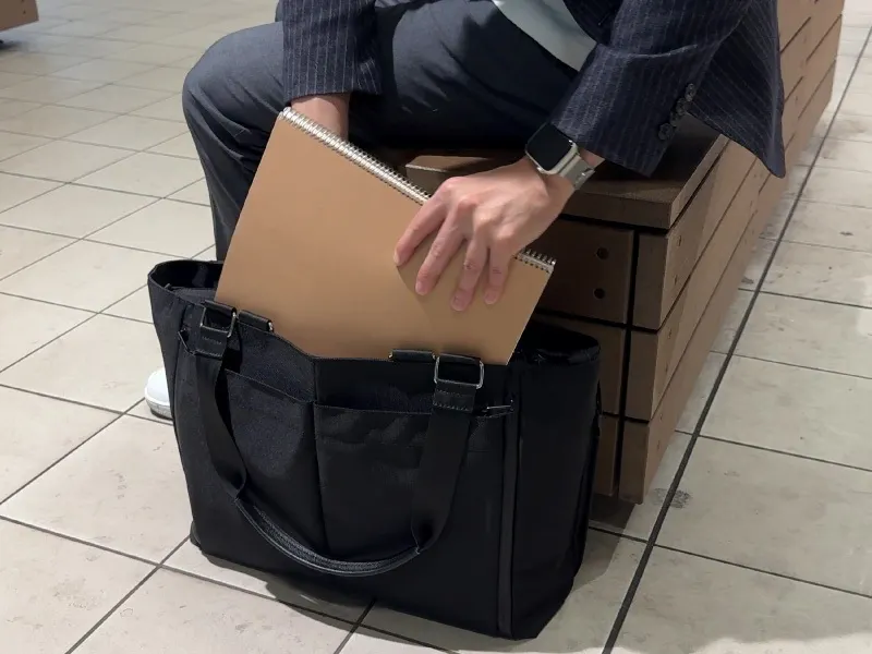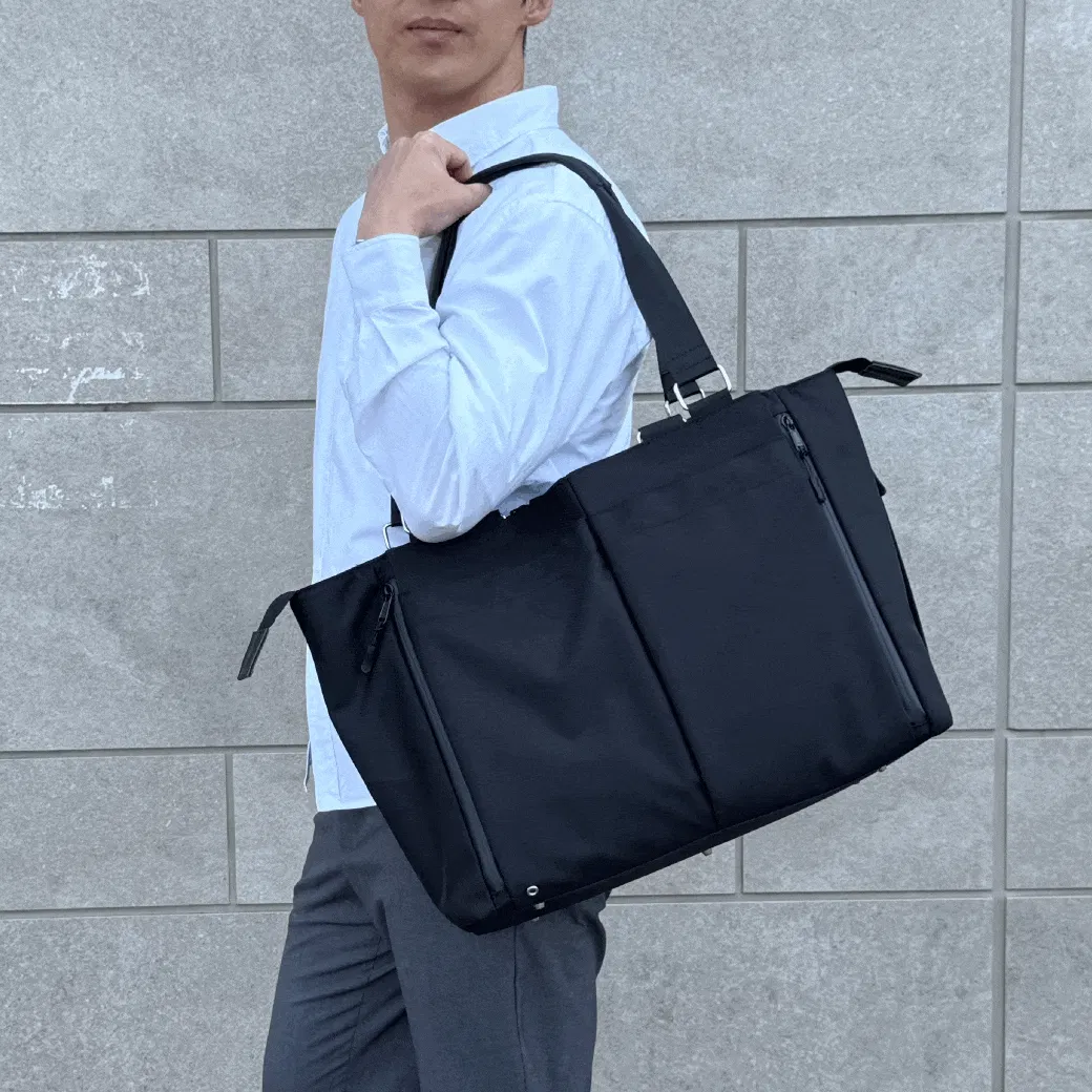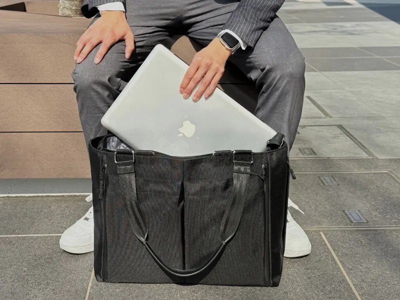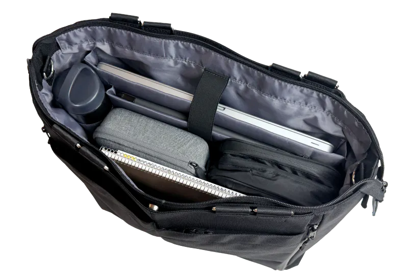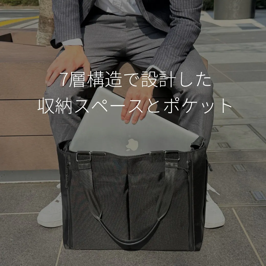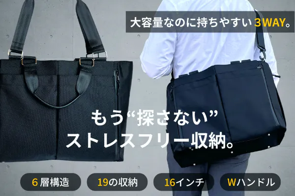 ノートPCや書類、ポーチに折りたたみ傘まで。6層構造&19ポケットで、ビジネスに旅行に、普段使いにも対応できる大容量トート。整理整頓もこれひとつで完結!
