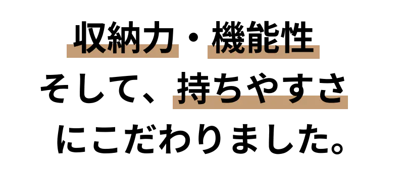バッグが大きいからこそ持ちやすさを重視するため、肩掛け(ロング)と手持ち(ショート)のどんな時でも持ちやすいダブルハンドルを採用しました。