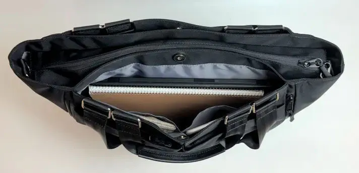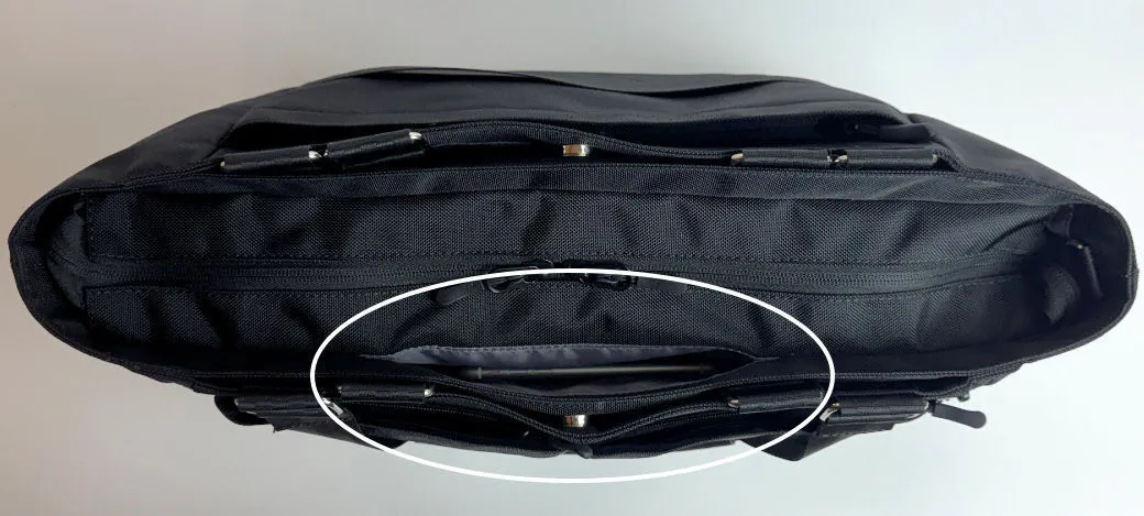 バッグ背面側の5層目は、3層目と同じように13インチPCやA4ファイルの収納が可能なポケットです。こちらも使用しないハンドルの収納スペースとしても使用します。