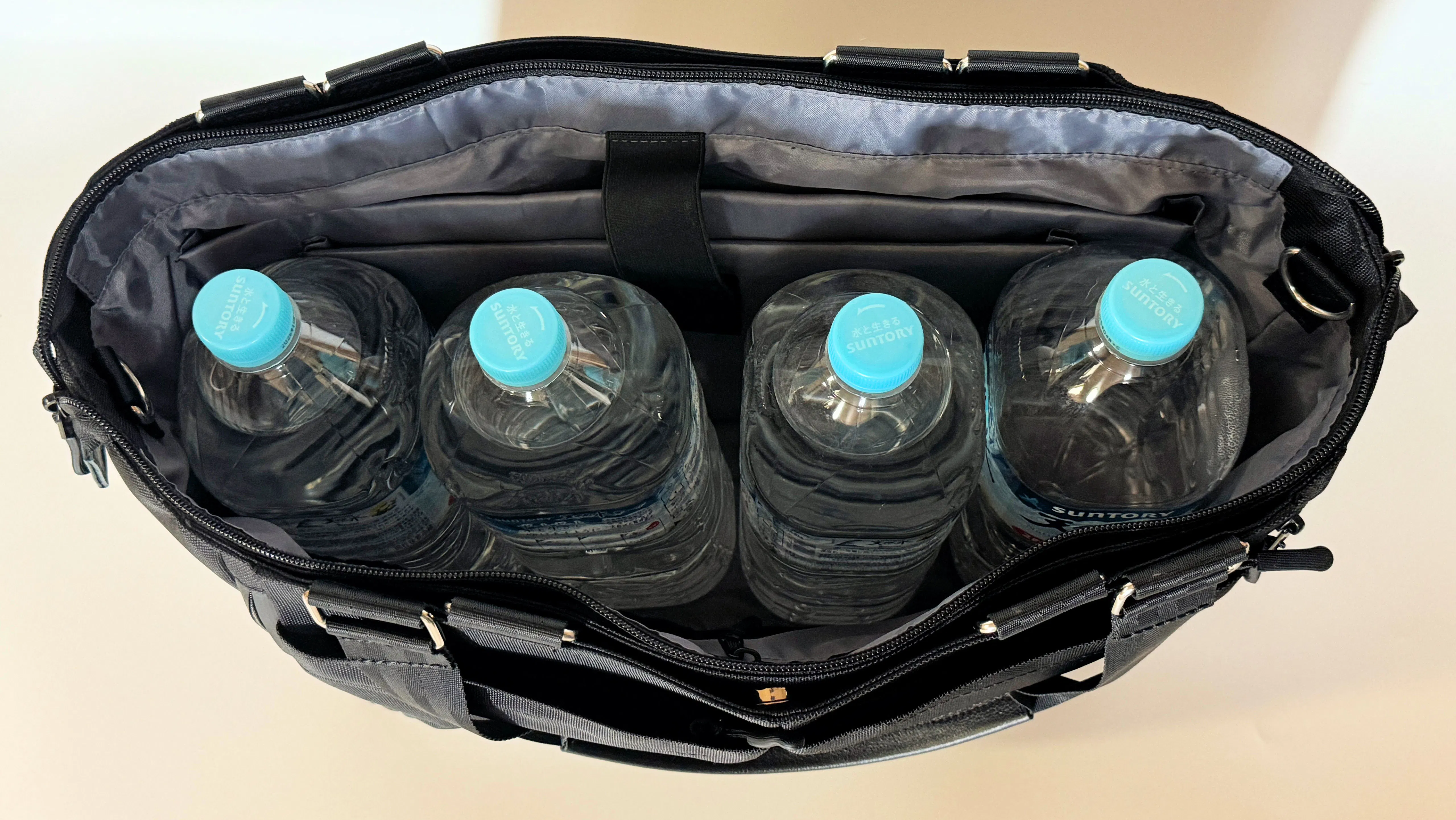 メイン収納には2Lのペットボトルが4本入るサイズ感です。