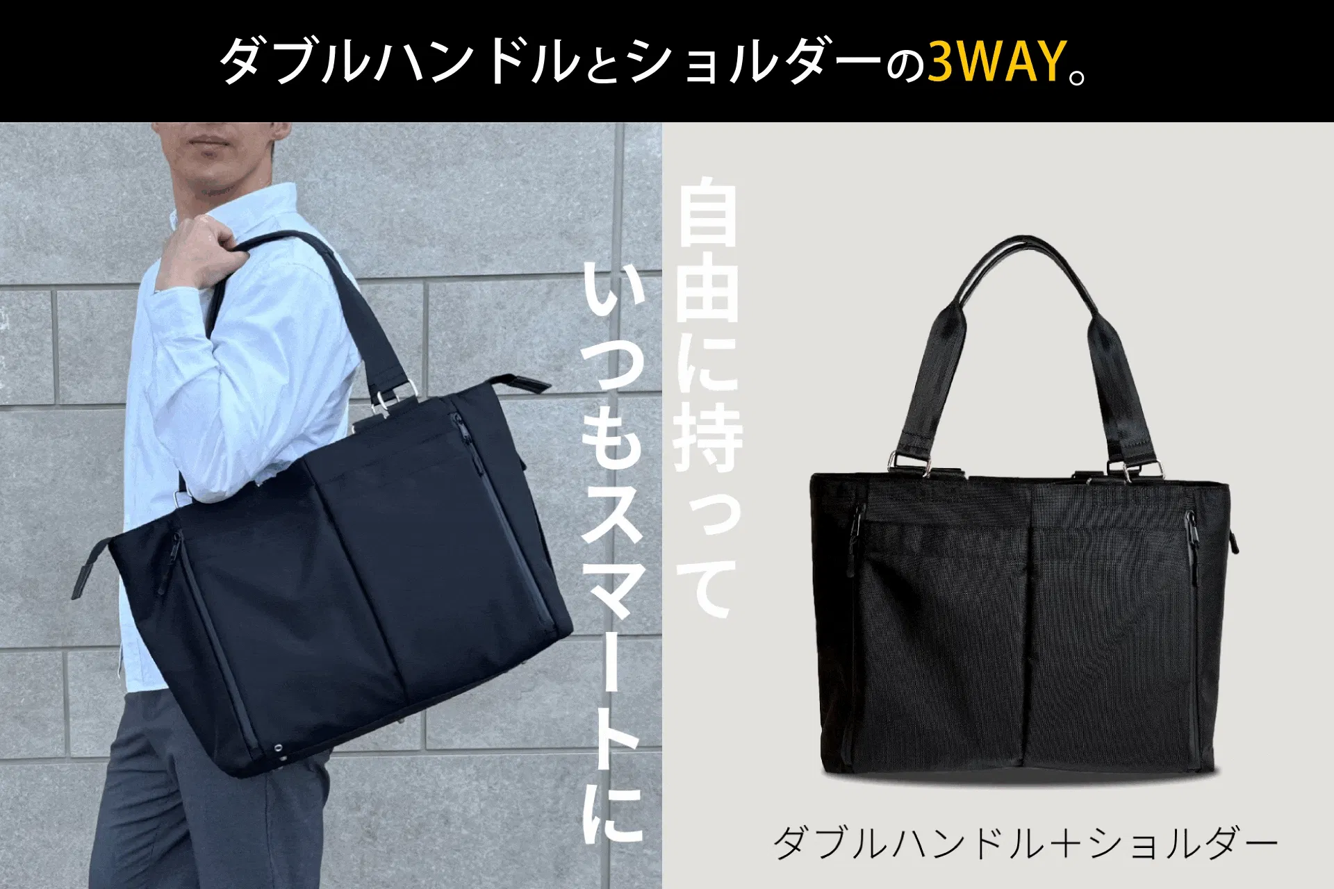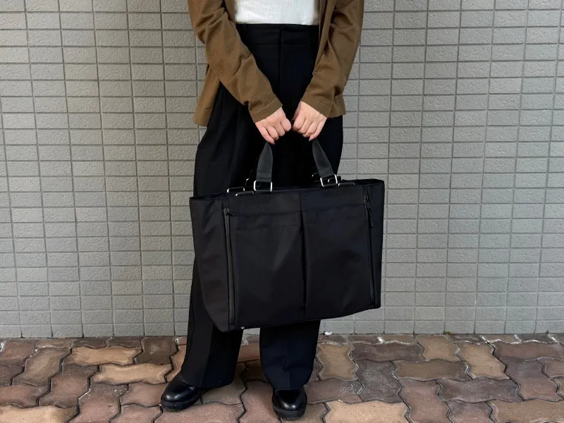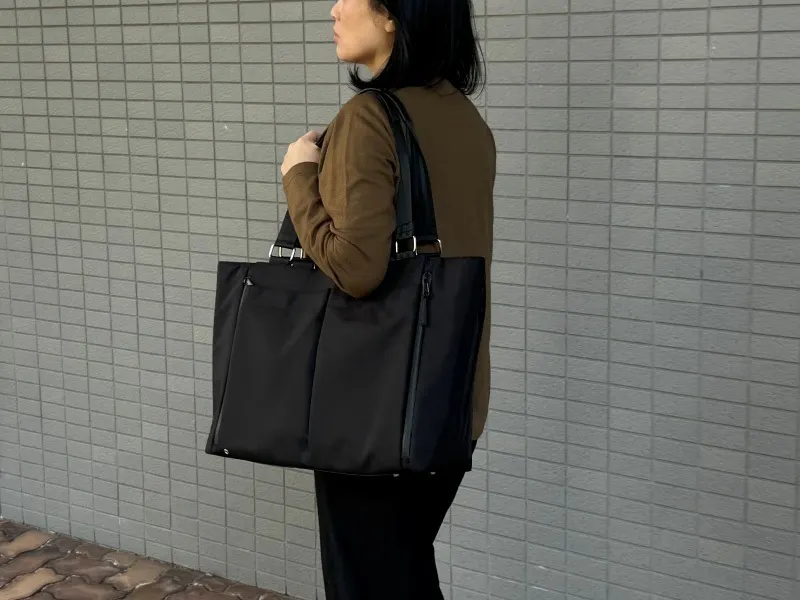 ダブルハンドル×ショルダーストラップで、通勤もお出かけもシーンに合わせて自由自在。持ち方を変えるだけで、毎日のスタイルがもっとスマートに。