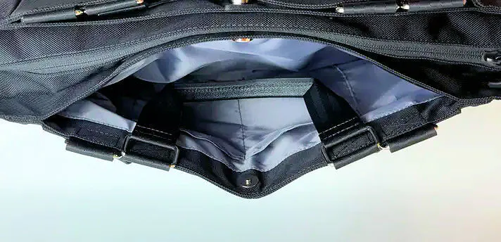 1000デニールのこのナイロン素材は、通常のナイロンよりも太い繊維で織られているため、摩耗や引き裂きに非常に強いです。アウトドアやビジネスユースでもタフに使えます。また中身が少なくてもバックの形がキープされやすい特徴もあります。