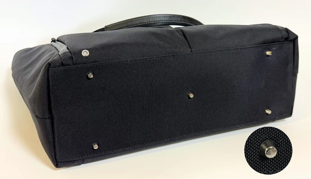 バッグの底を保護するための底鋲は5カ所に付けました。