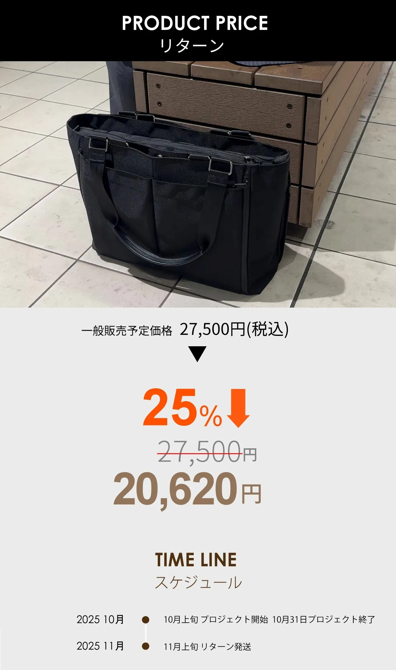 2025/10/08 10:27ご支援者、ご覧の皆さまはじめまして、プロジェクト実行者のpiunoです。3WAYトートバッグ「TANT16」プロジェクトを公開致しました!▶プロジェクトページはこちらこのトートバッグ「TANT16」は16インチが入るPCスリーブを備え、スマホも書類も探さない!大容量だからダブルハンドルで持ちやすさも重視したテックトートです!今回のプロジェクトがお得にお求めいただける最後のチャンスとなりますので、是非、この機会にお求めいただければ嬉しいです。商品に関するご質問等がございましたら、お気軽にお問合せ下さい。皆さまのご支援を心よりお待ちしております。ありがとうございましたスタッフ一同 もっと見る