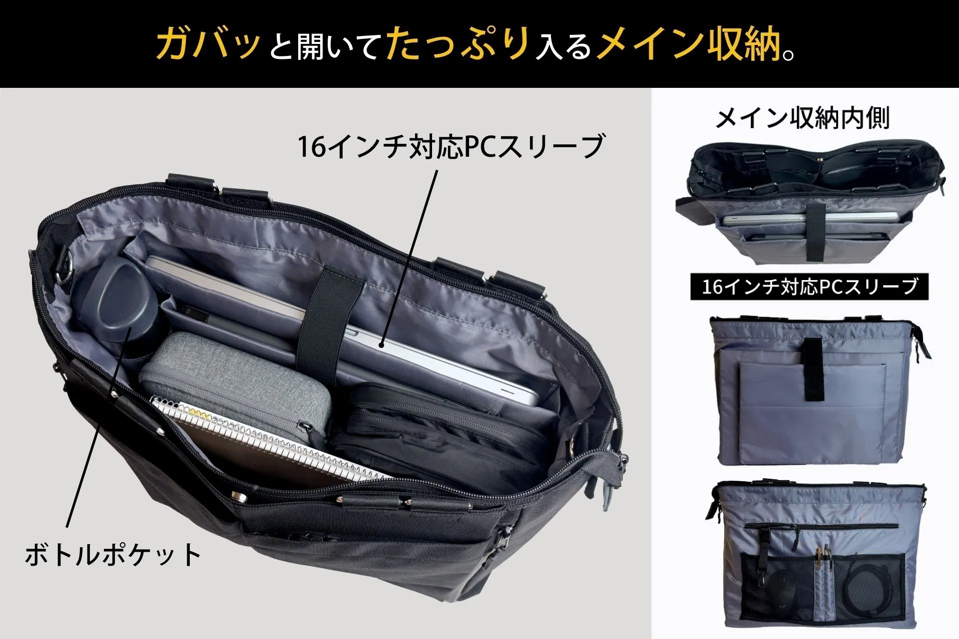 16インチPCもすっぽり!大容量トート