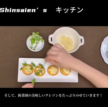 『チーズクラッカーのクレソン添え』です。クレソンの辛味がいいアクセントになってとても美味しい味でした!