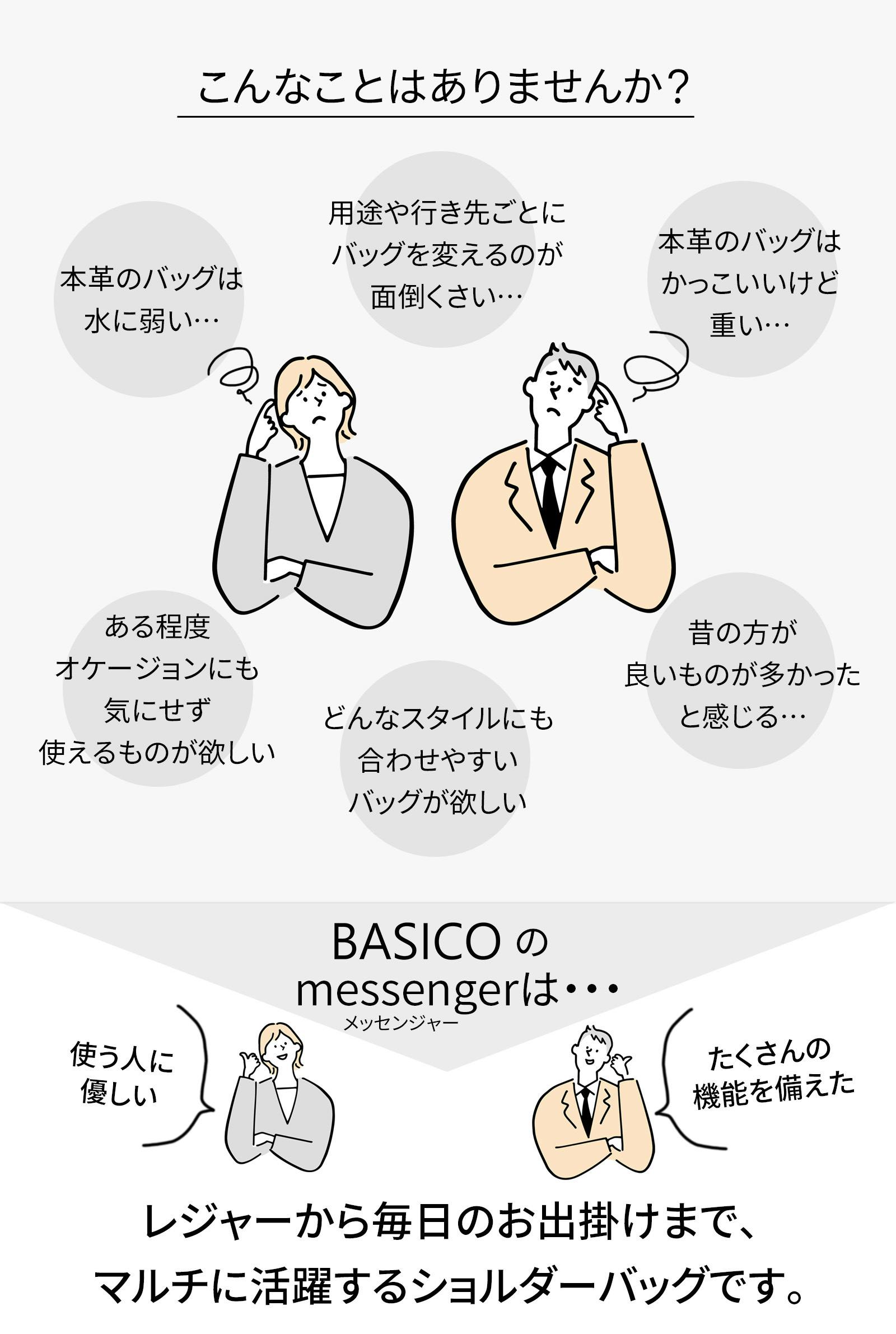 2026/03/03 08:30messenger実行者のBASICOです。BASICO公式Youtubeチャンネルでは、messengerについてのショート動画をいくつかアップしています。ぜひご覧ください!▼messengerってどんなバッグ?https://youtube.com/shorts/HfJqI3W6RSQ▼messengerに使用する特別なゴートレザーとは?https://youtube.com/shorts/idRRHBQ0JkI▼messengerの容量は?https://youtube.com/shorts/NGDL4SZnYS8▼左利きなのですが。。。https://youtube.com/shorts/OpqDiKeqkiA※一部、今回のプロジェクトでは材料手配の関係で販売していないカラーが写っています。(オフ白系カラー)プロジェクトでの販売カラーは「ブラック」「アッシュグレイ」「キャメルブラウン」の3色となります。ご了承ください。BASICO もっと見るmessengerの開閉方向が選べる理由