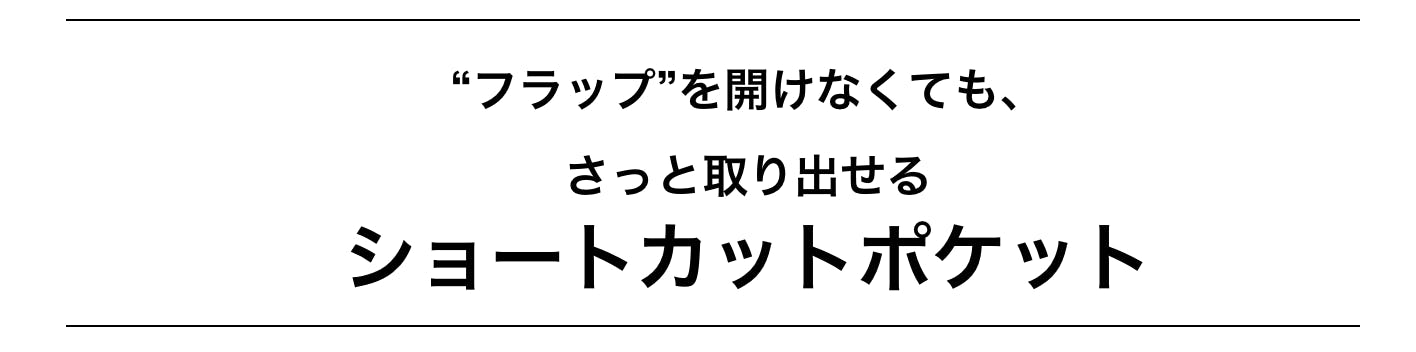 外側前面には、フラップを開けずに使えるショートカットポケットを配置。