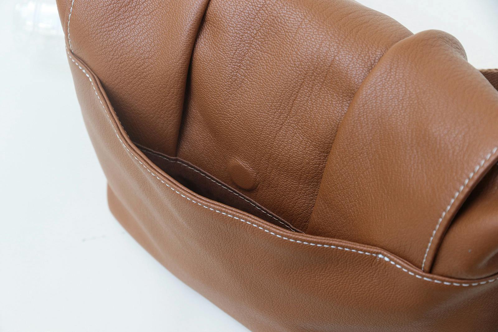 バッグに芯材を入れなかったり、裏地を省いて革一枚で仕立てたりすれば、コストを抑え、もっと安く商品をご提供することもできます。しかし私たちは、そうした“削る”選択肢を取りませんでした。