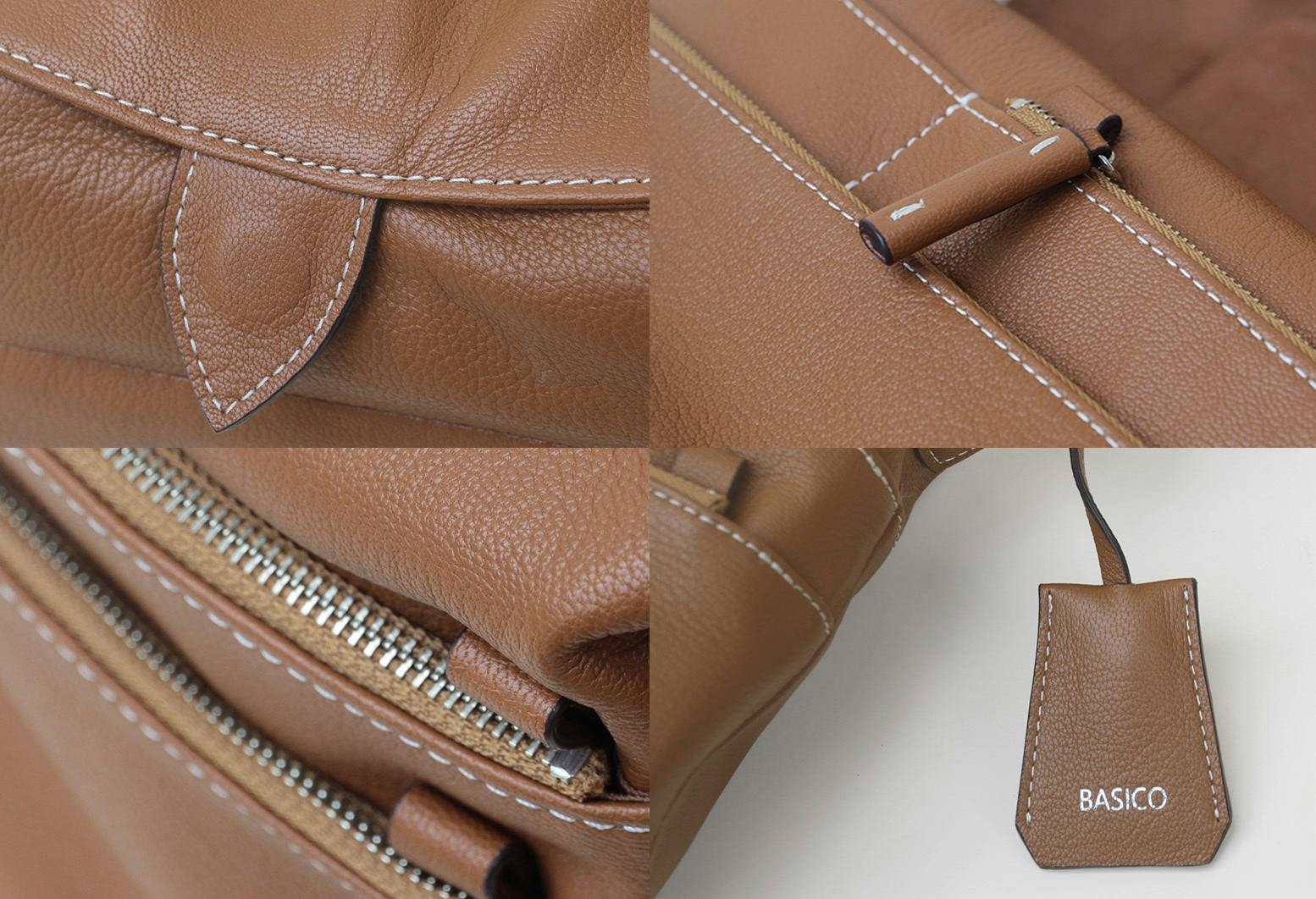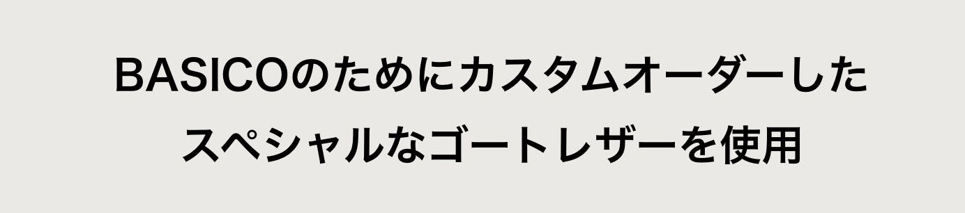 しっとりと手になじみ、くたっと柔らかい、撥水加工を施したゴートレザーは、老舗タンナーで特別に作られた、BASICOのオリジナル。