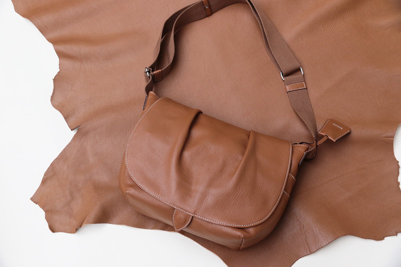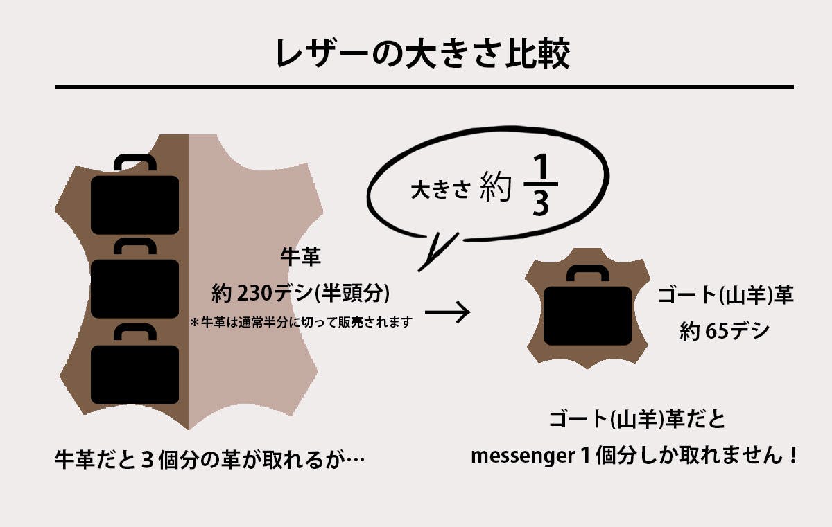 天然皮革を使用することは「持続性」「耐久性」「デザイン性」において素晴らしい特性を発揮します。しかし一点だけ、大きなデメリットである「重さ」、そのイメージを払拭し、軽い本革バッグを実現するためには、ゴートレザーである必要がありました。