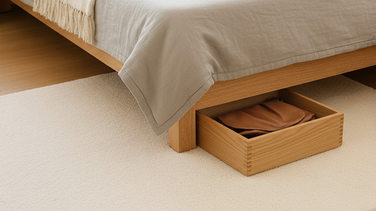 引き出しや、ベッドの下などのデッドスペースにしまったりすることもでき、省スペースで収納できます。