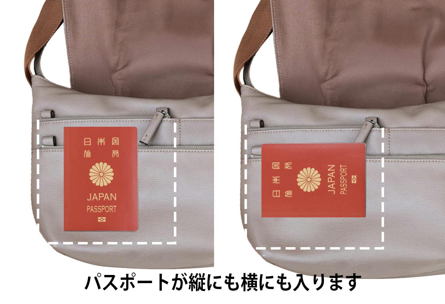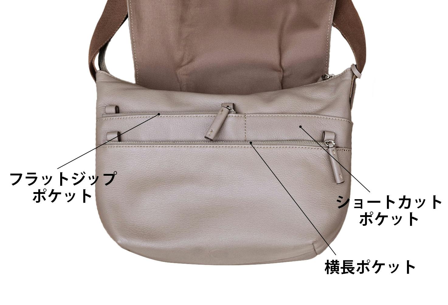 ただし、斜めがけを想定されない場合などもございますので、それぞれ皆様の持ちたい持ち方を、お持ちのショルダーバッグ等でシミュレーションいただき、開けやすい方向をお選びください。
