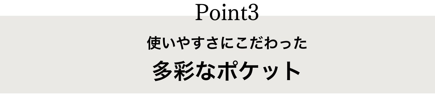 うっかりどこに入れたか忘れてしまいそうなものを、無理なく管理できる、多彩なポケットです。