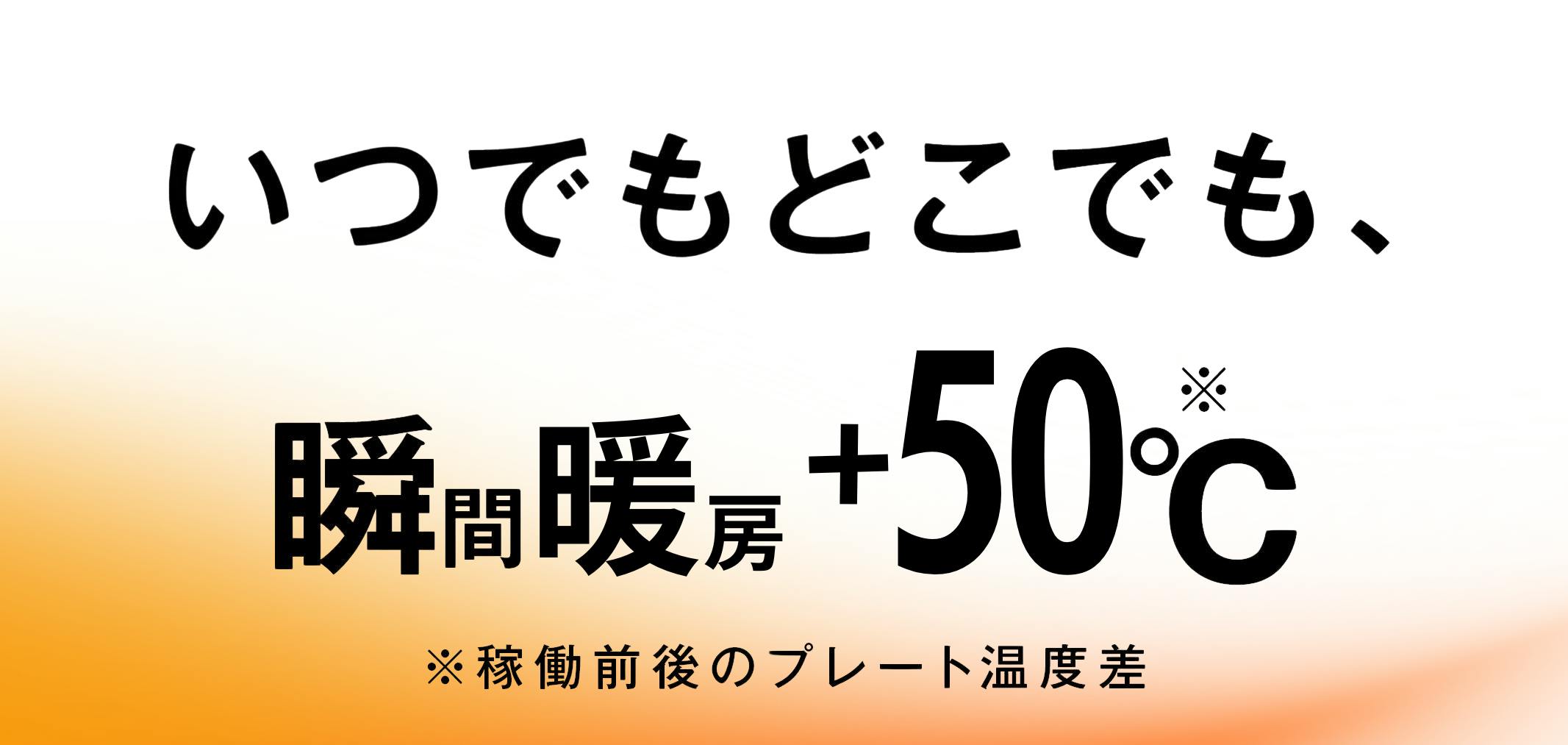 ペルチェ素子を採用した「ペルチェデバイス」なら、即暖+50℃(※)を実現。まるでポケットに入れたカイロのようなぬくもりが、スイッチを入れて数秒で広がります。
