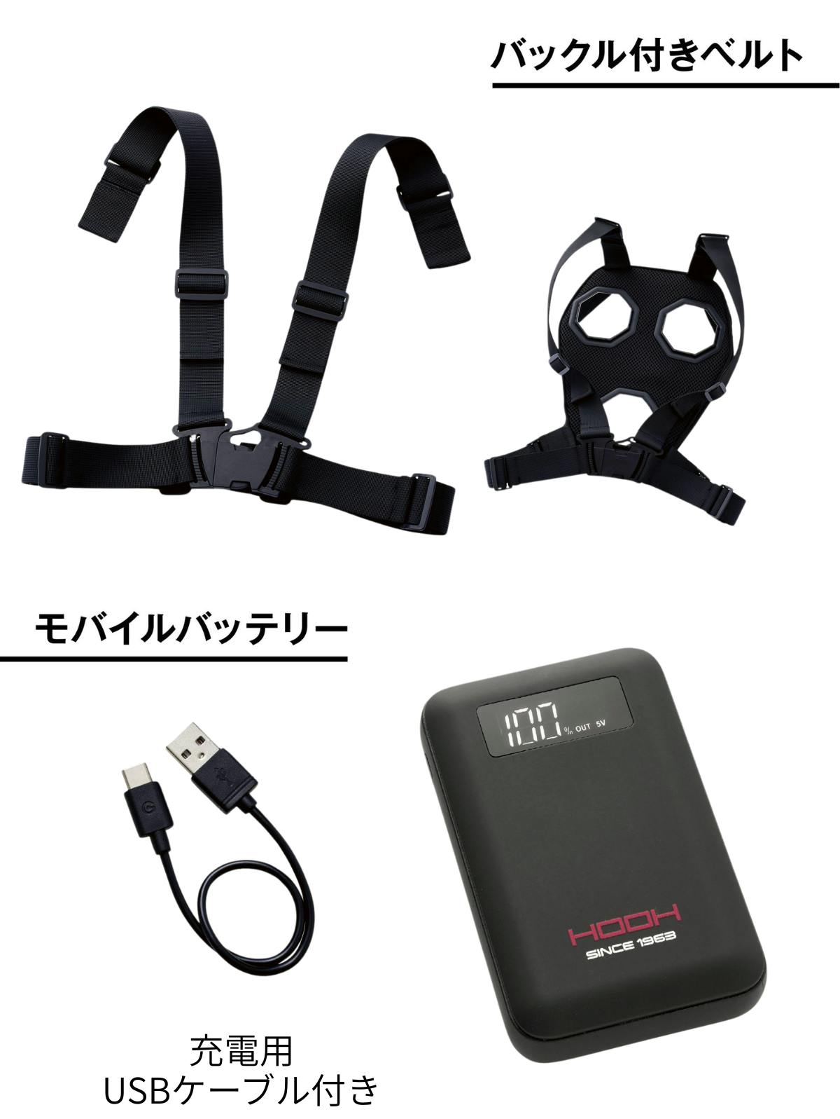 ペルチェデバイス3個×1セット(※3個で1セットとなっており、分離不可になります。)、モバイルバッテリー×1、充電用USBケーブル×1、専用スイッチ、リュックベルト×3、バックル付ベルト×1、取扱説明書/保証書×1