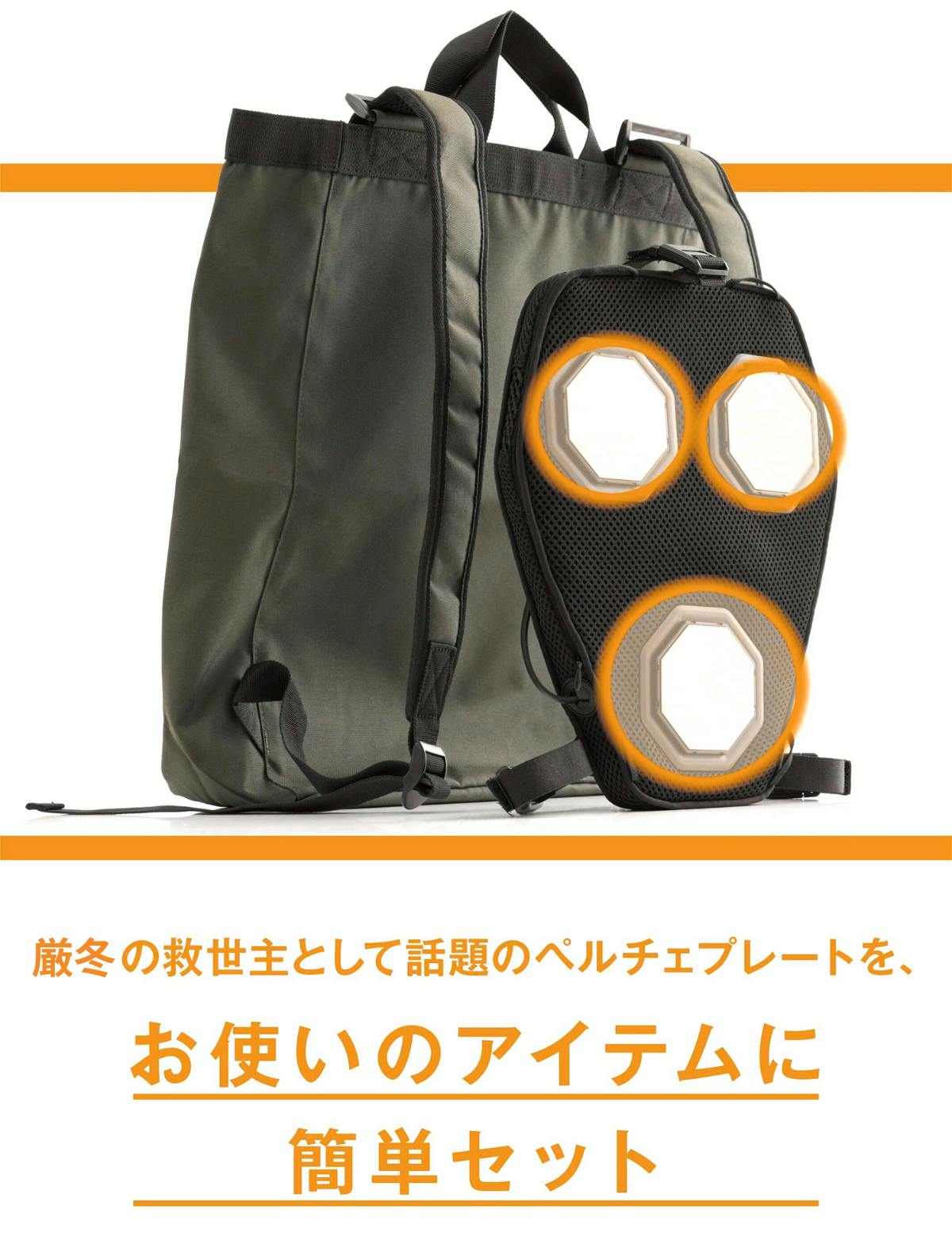 リュックやシートに取り付けることで、外でも室内でも快適に。暖房器具が置けない場所でも、マルチペルチェなら「自分だけの防寒」を手にいれることができます。