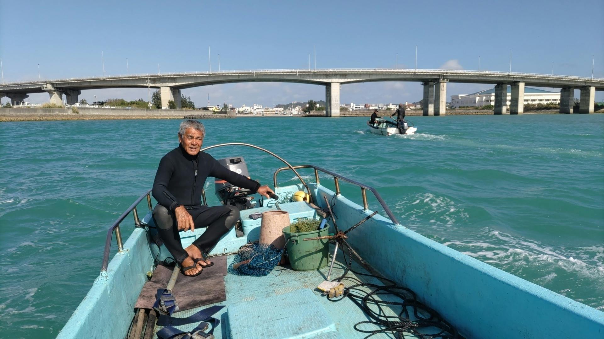 海中もまだ暖かいですが、風の影響で冷えるので、素潜り海人は海ではウエットスーツ着用し始めました!