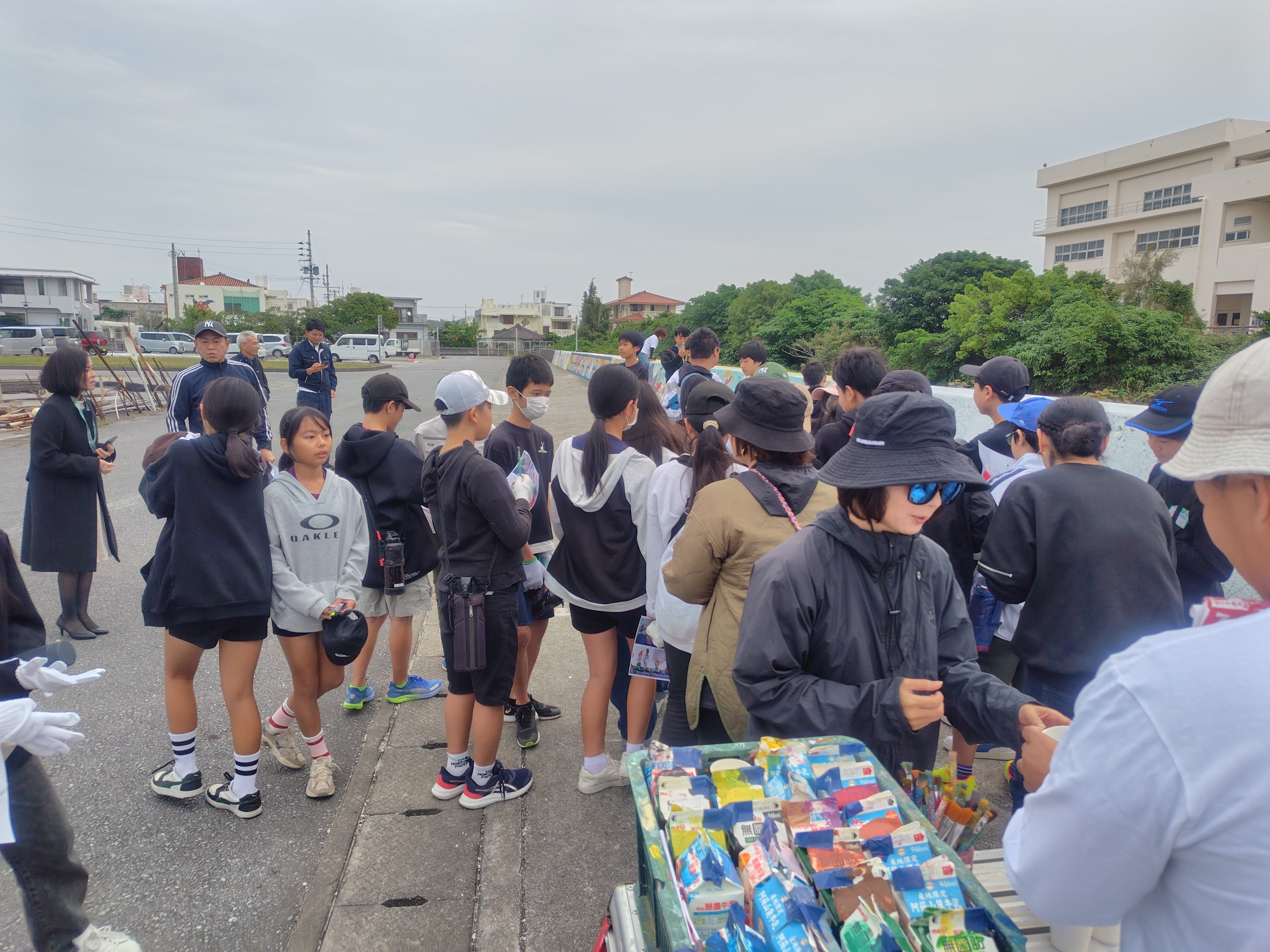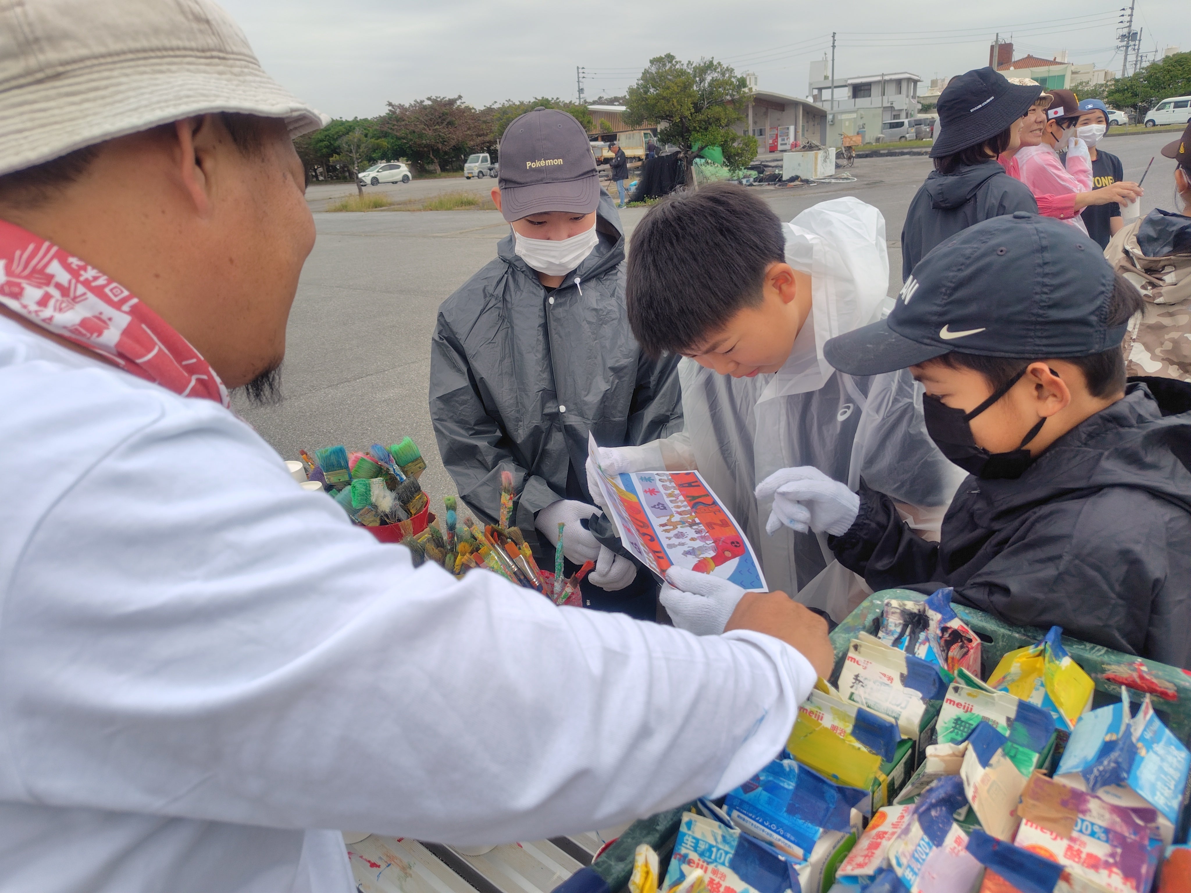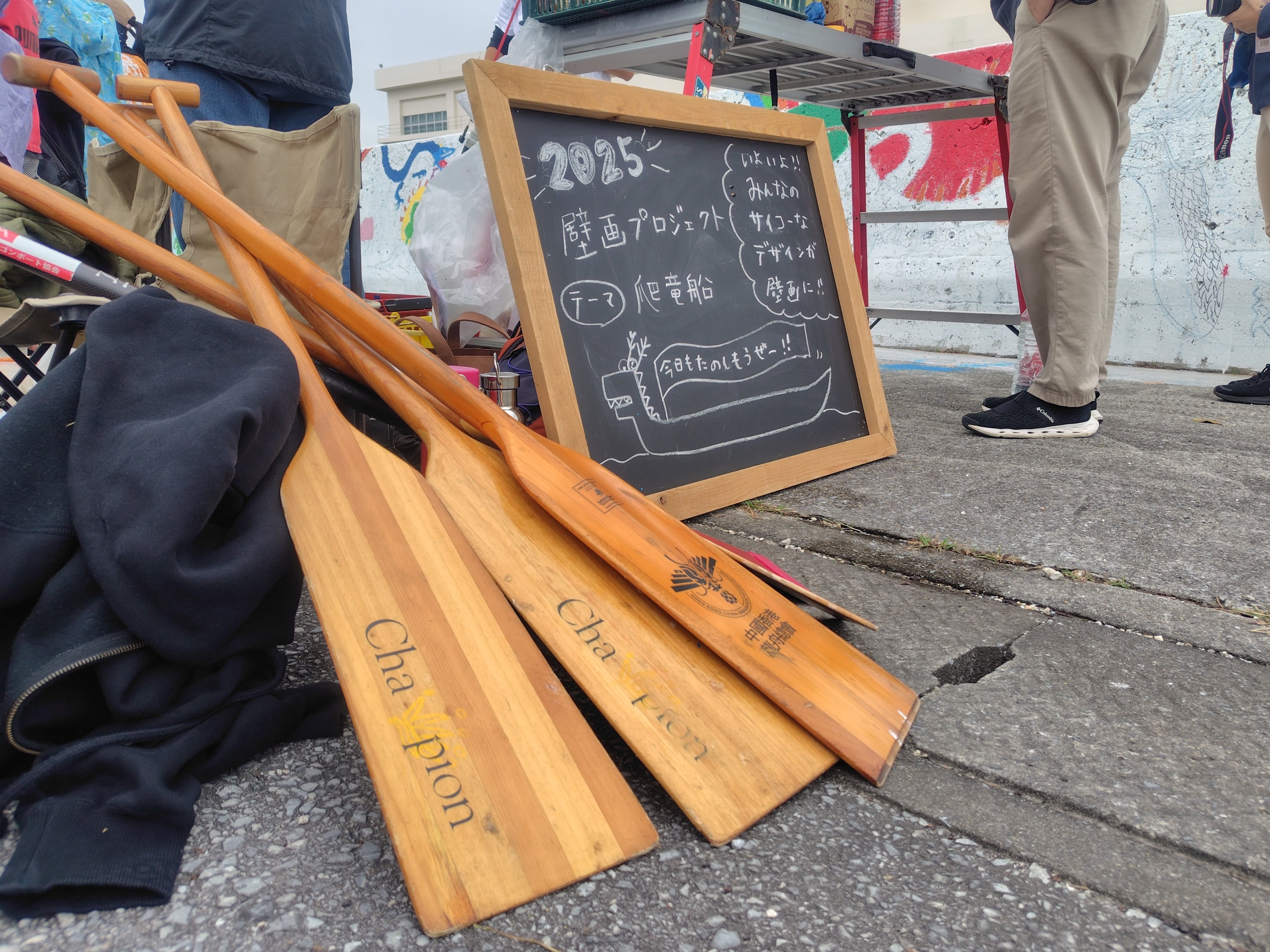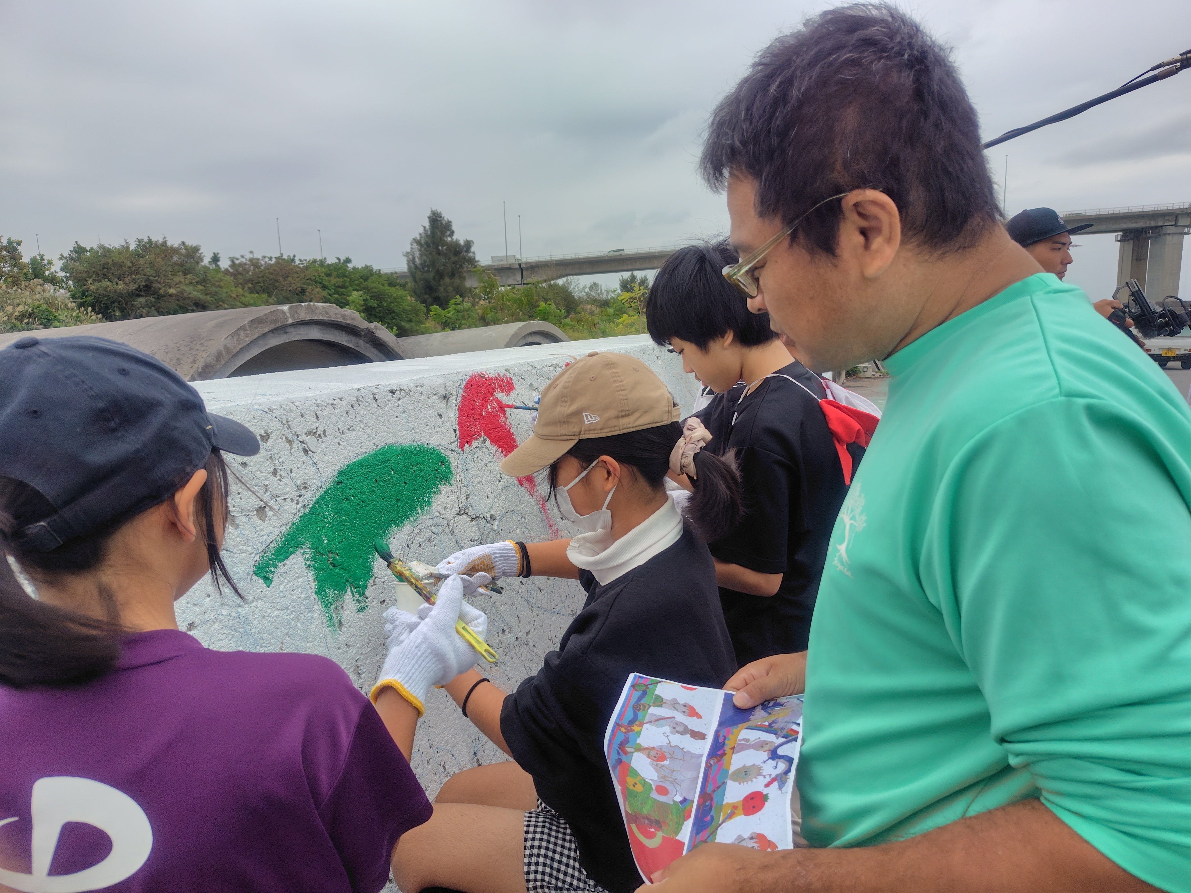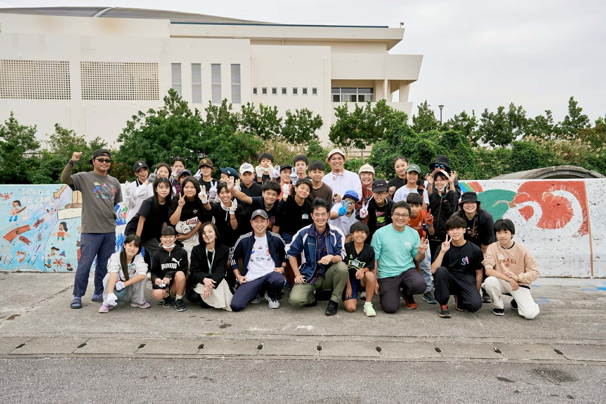 多数の保護者さん、校長先生や教頭先生、豊見城市長や豊見城市教育長も一緒になって4年目の壁画も無事に行うことができました!