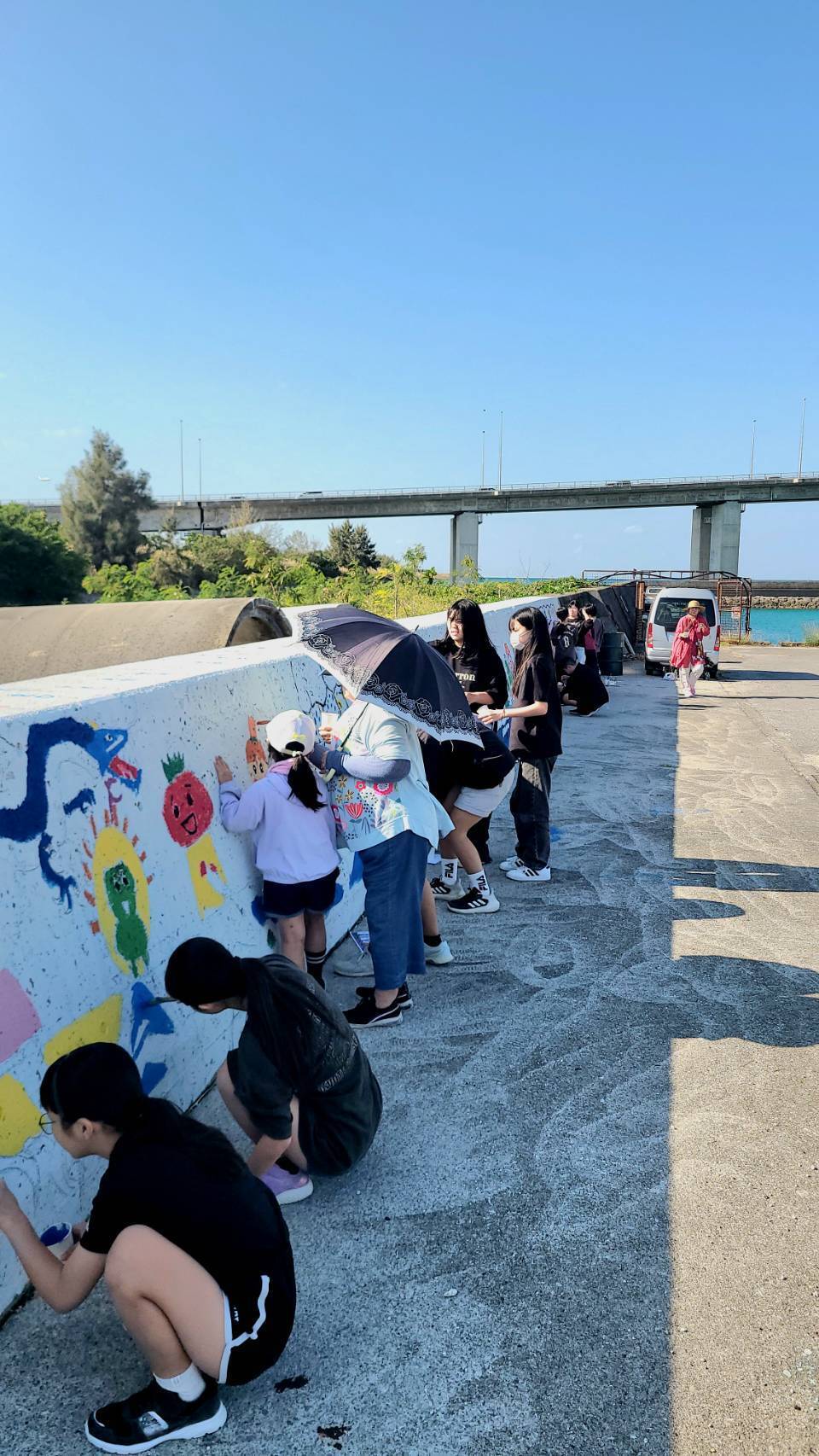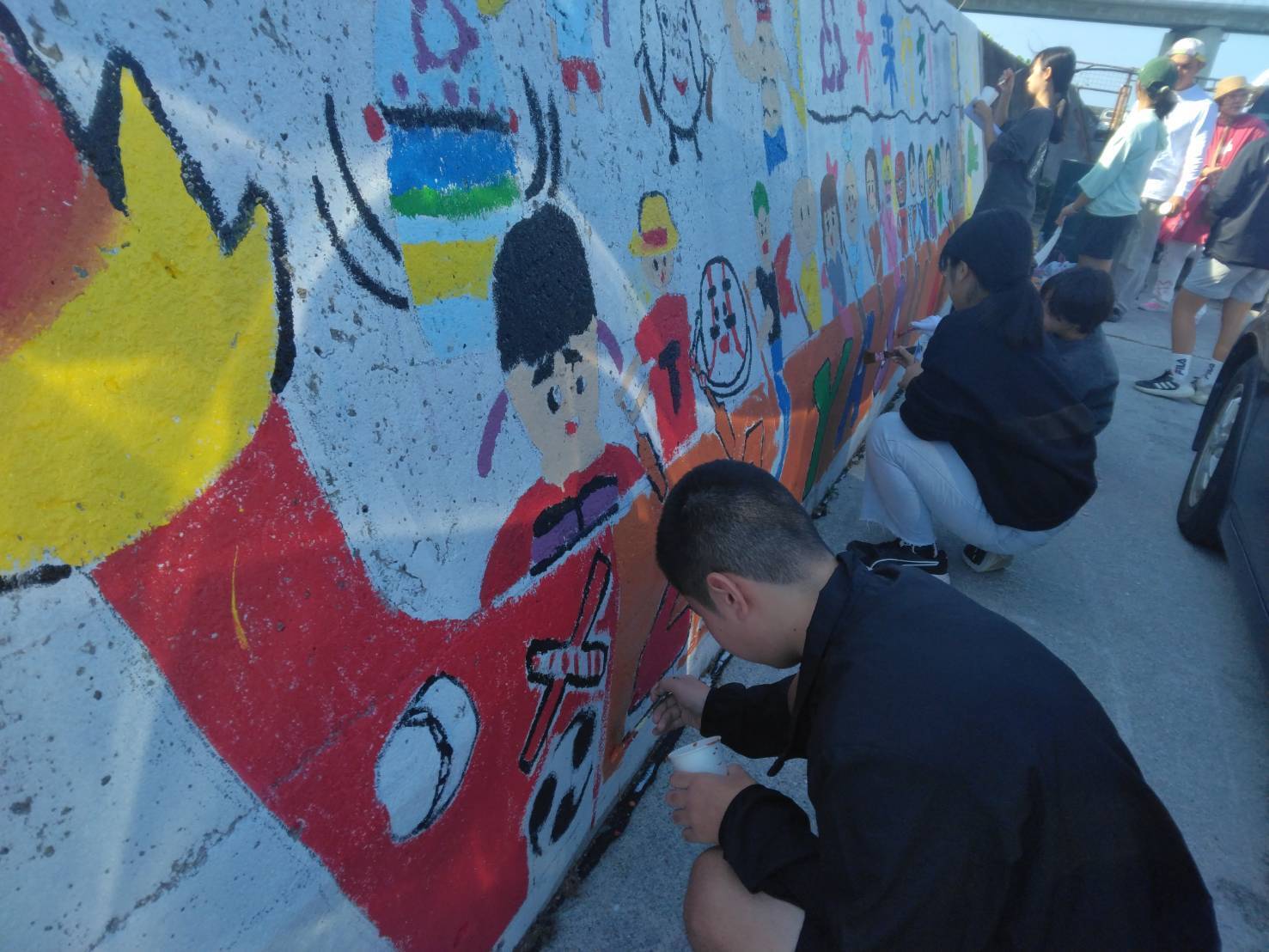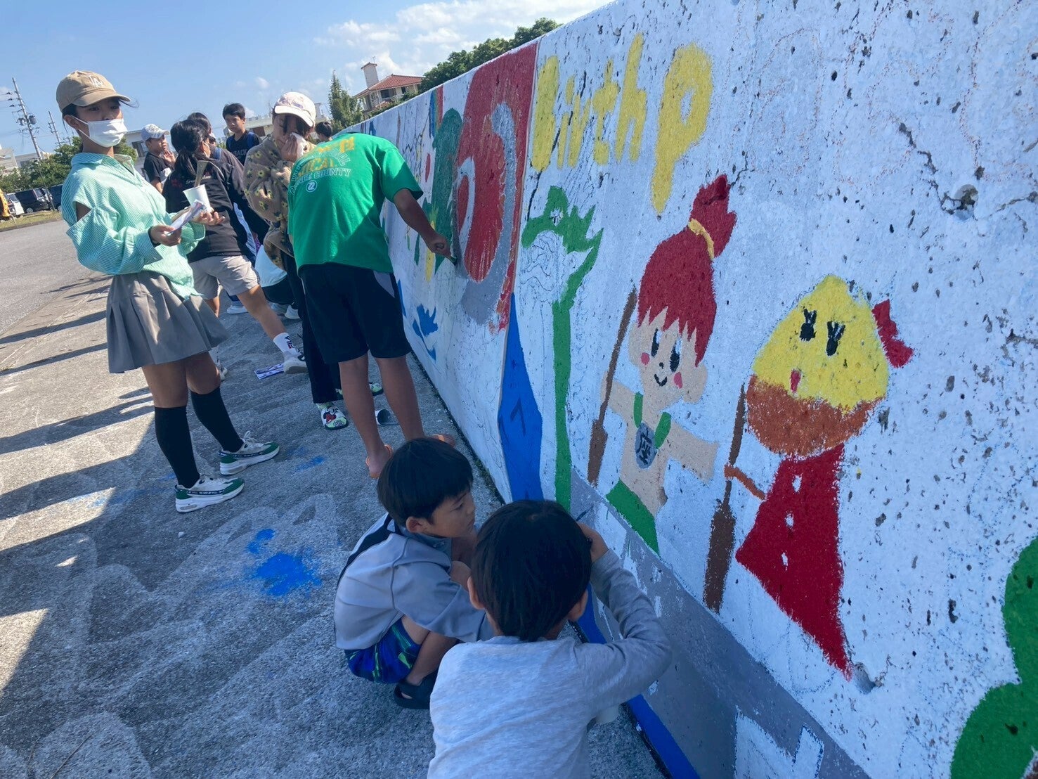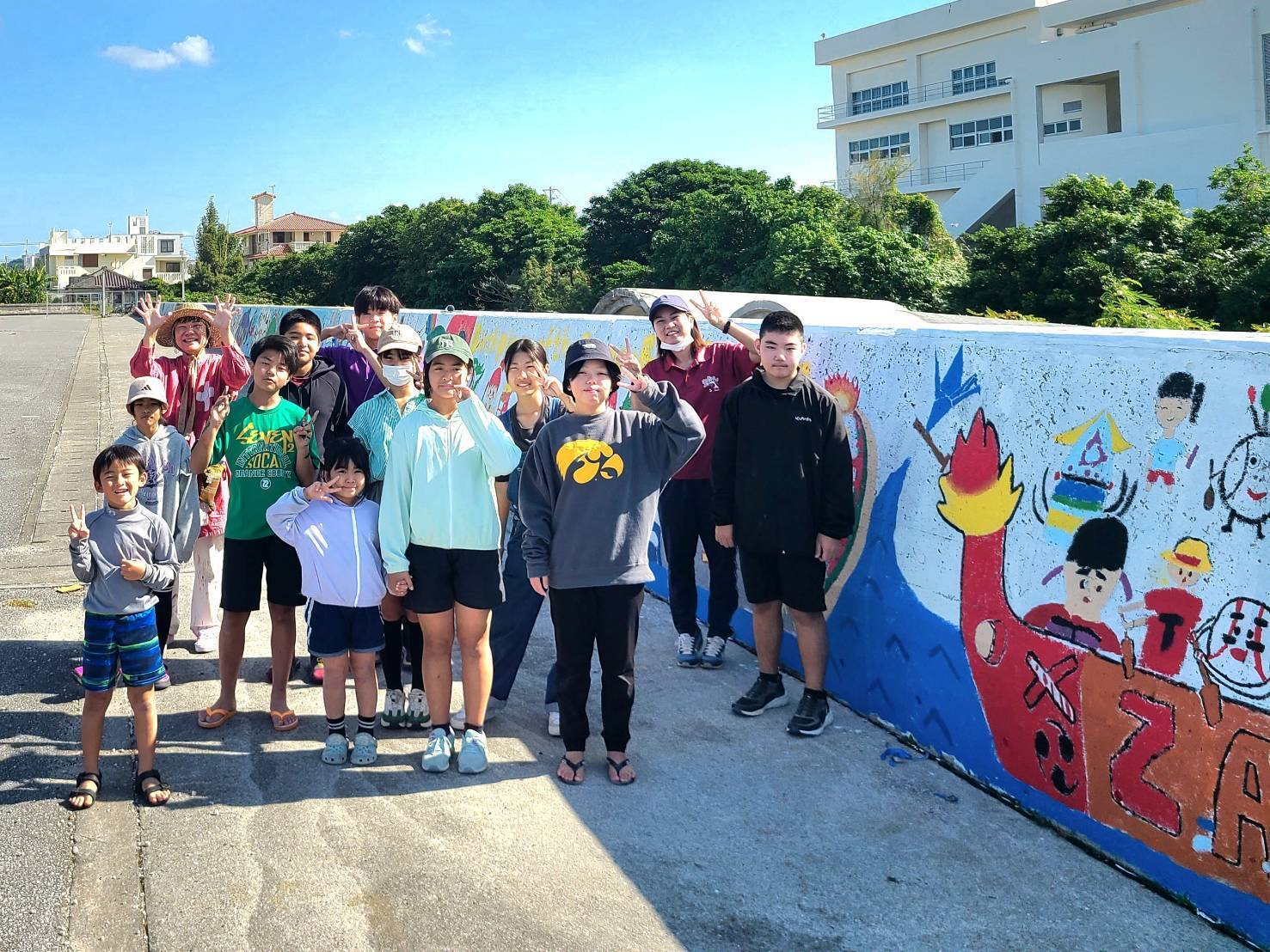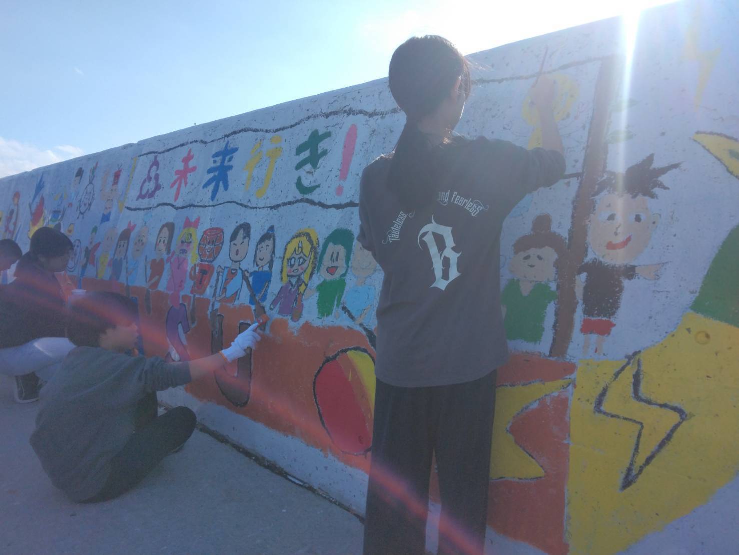 2025.12.6(土)天気に恵まれた週末。25名あまりの座安っ子たちと先生方、地域の皆さんと一緒にペイントしました!コミュニケーションをとりながらペイントしていくことで社会性や壁画への愛着も培われていくことと思います。さらに完成が待ち遠しくなってきました!