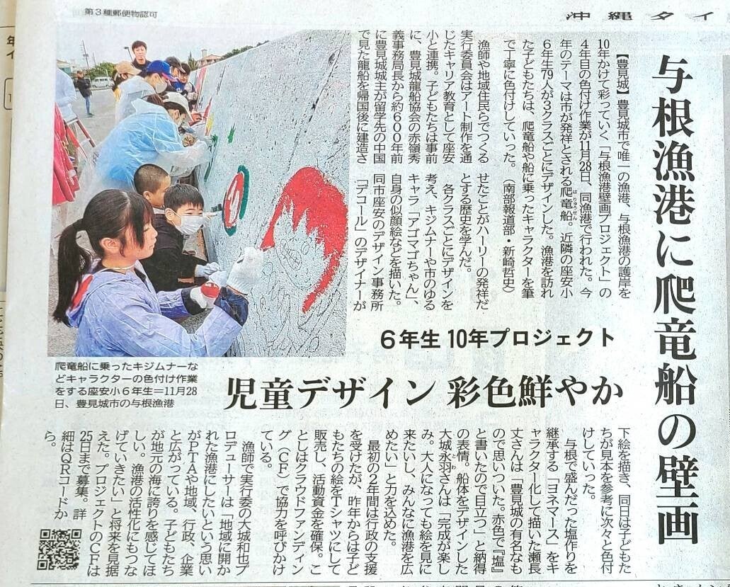 先日、沖縄タイムス紙、豊見城市広報誌(広報とみぐすく:表紙、P5)に掲載されました!