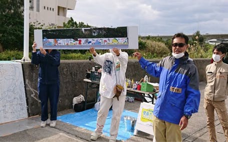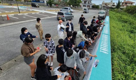 毎年、「豊見城・与根の海」をテーマに子どもたちが描いた原画を、地元の海人(漁師)、クリエイター、保護者がサポートし、護岸に一枚ずつ壁画として刻んでいく。