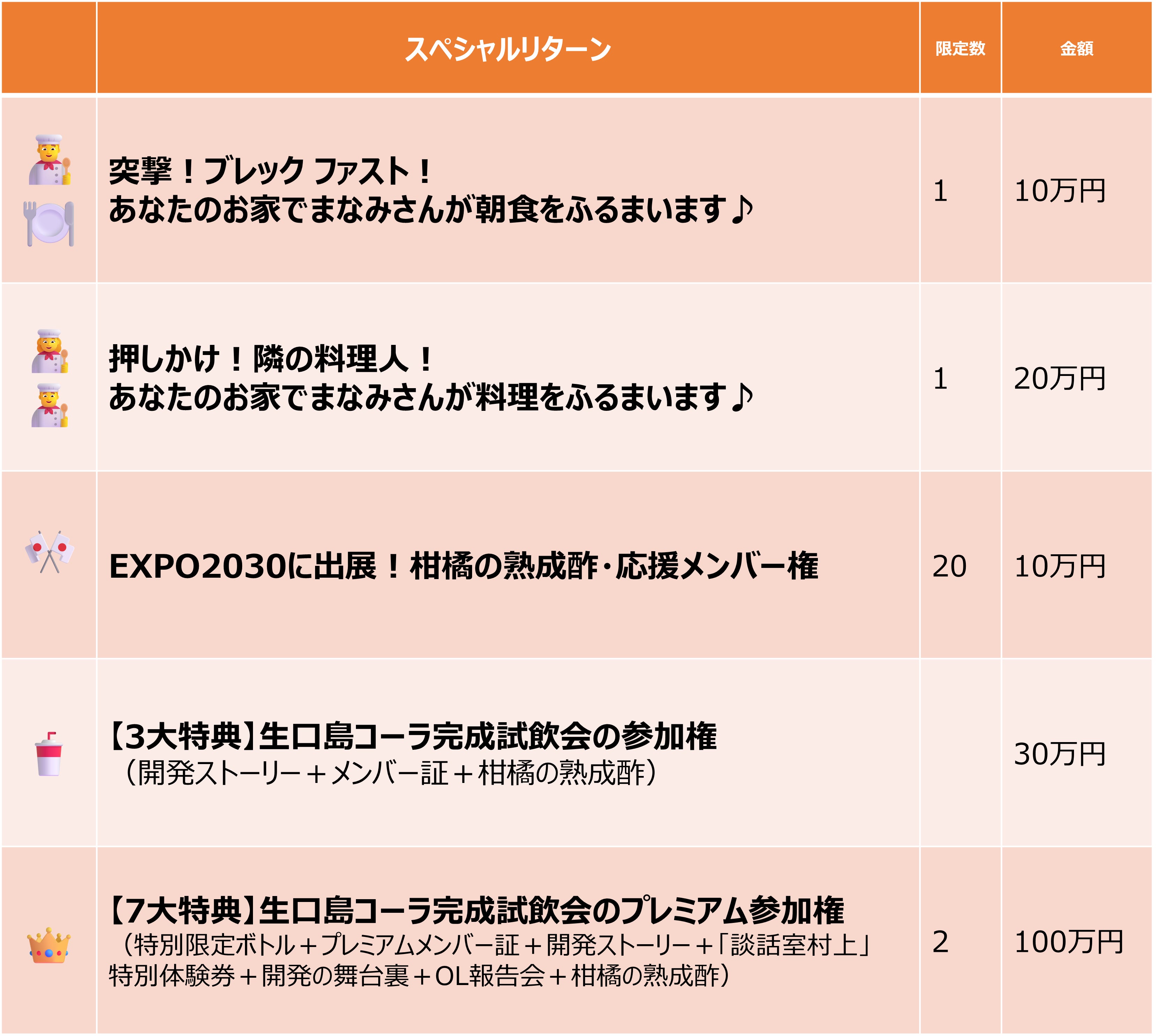そして、今回最後に追加したのがこちらの3つのリターンです!
