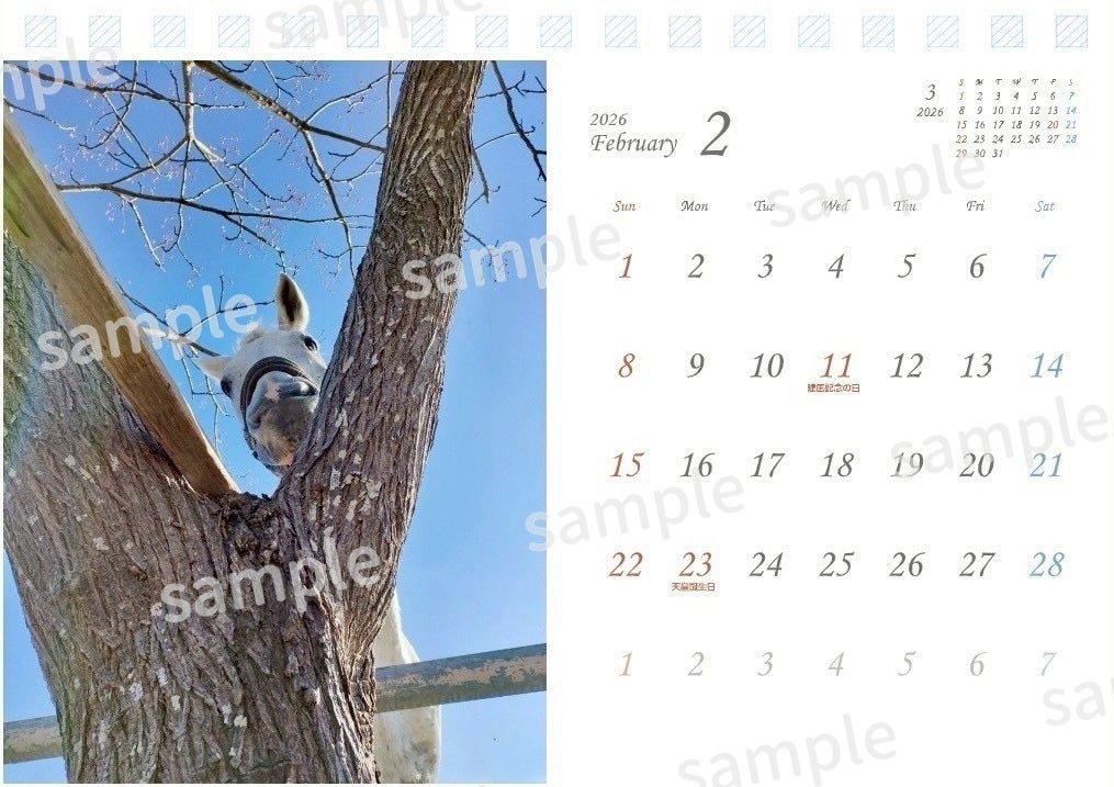 2026年の卓上カレンダーになります。宮崎大学で過ごす馬たちの日常の写真を載せております。