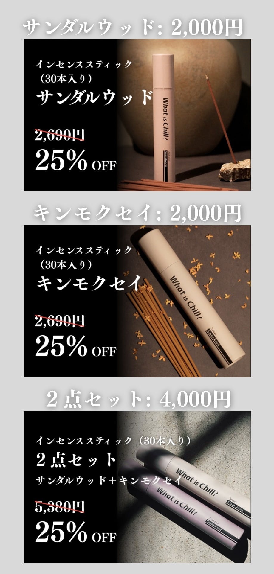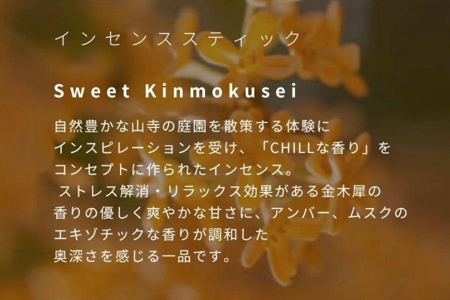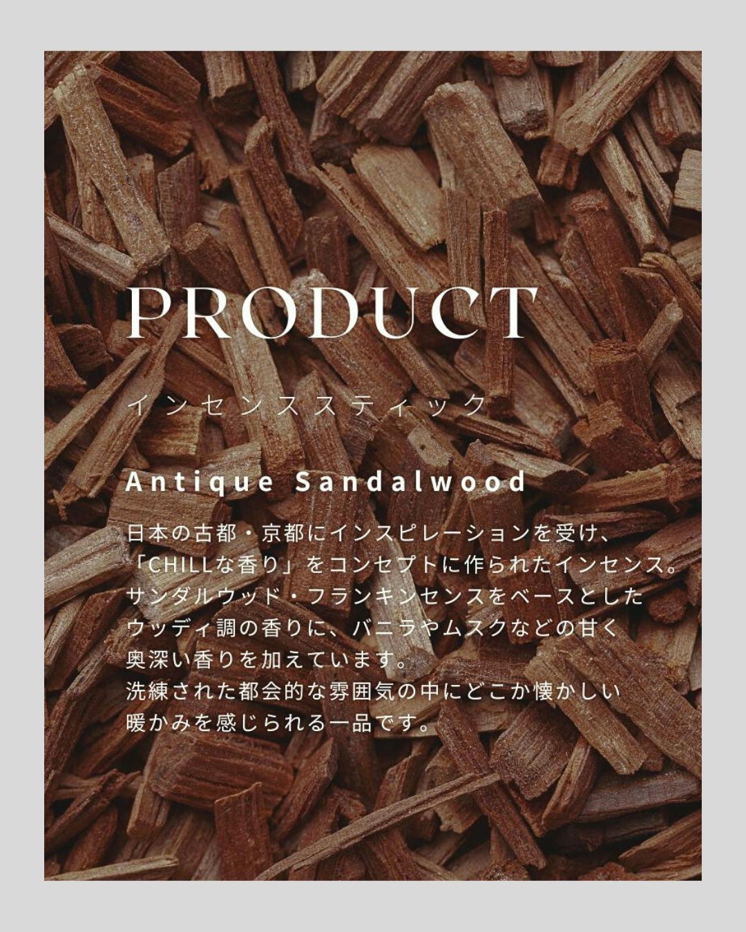 サンダルウッドや金木犀をベースにした「What is Chill?」のお香は発売以来、多くの方に支持いただき、現在完売状態です。