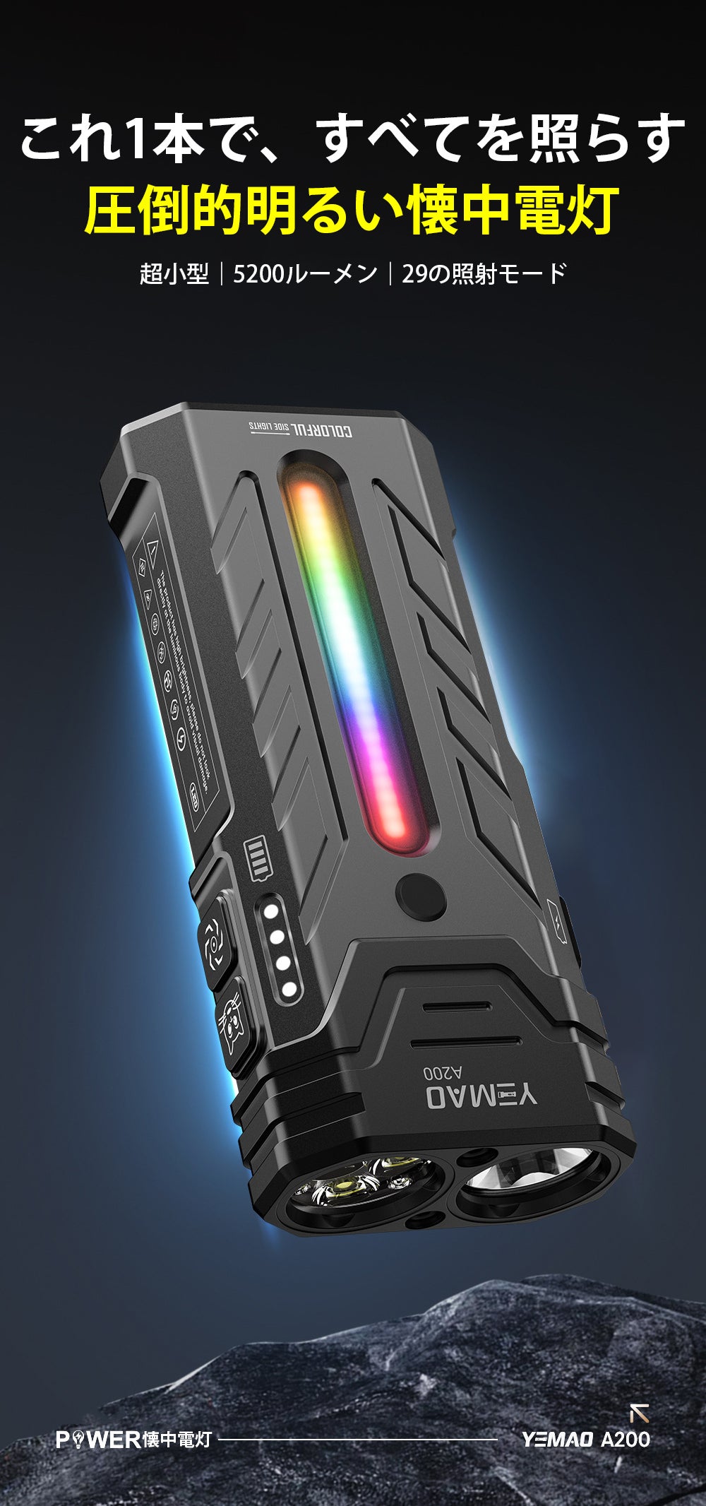 29種類の多彩な照射モードを搭載しているため、シーンや用途に応じて最適な明るさや点灯パターンを自由に選ぶことができ、作業、アウトドア、防災など幅広い状況で柔軟に対応できます。