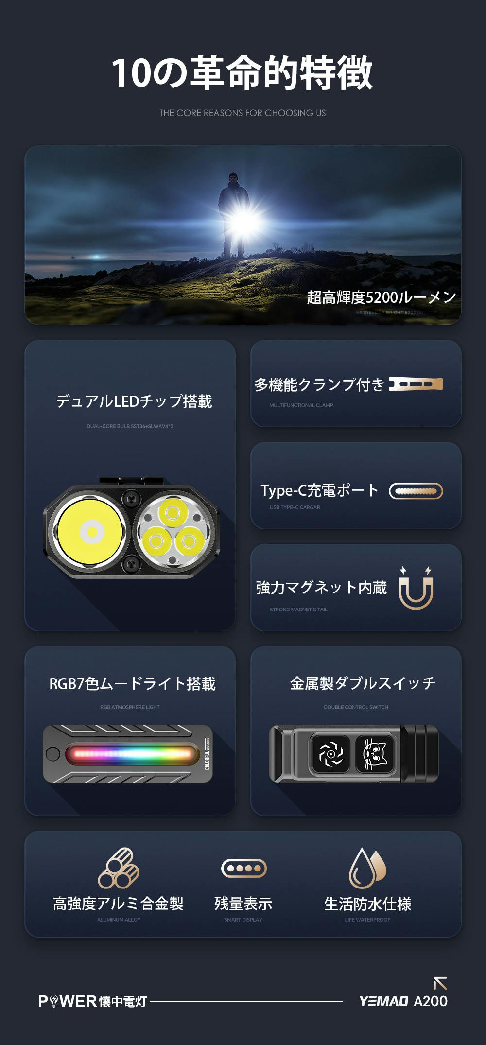 合計5600mAhの大容量バッテリーを搭載しているため、明るさを保ったまま長時間使用でき、キャンプや夜間作業、防災用としても安心の電力持続を実現します。