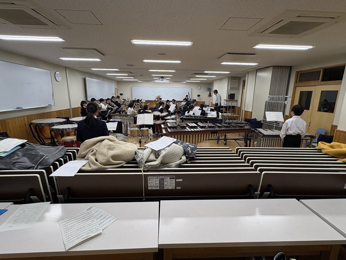 また、練習は多目的教室で行っており、音響面でも決して恵まれているとは言えない中、生徒たちは工夫を重ねながら練習を続けています。