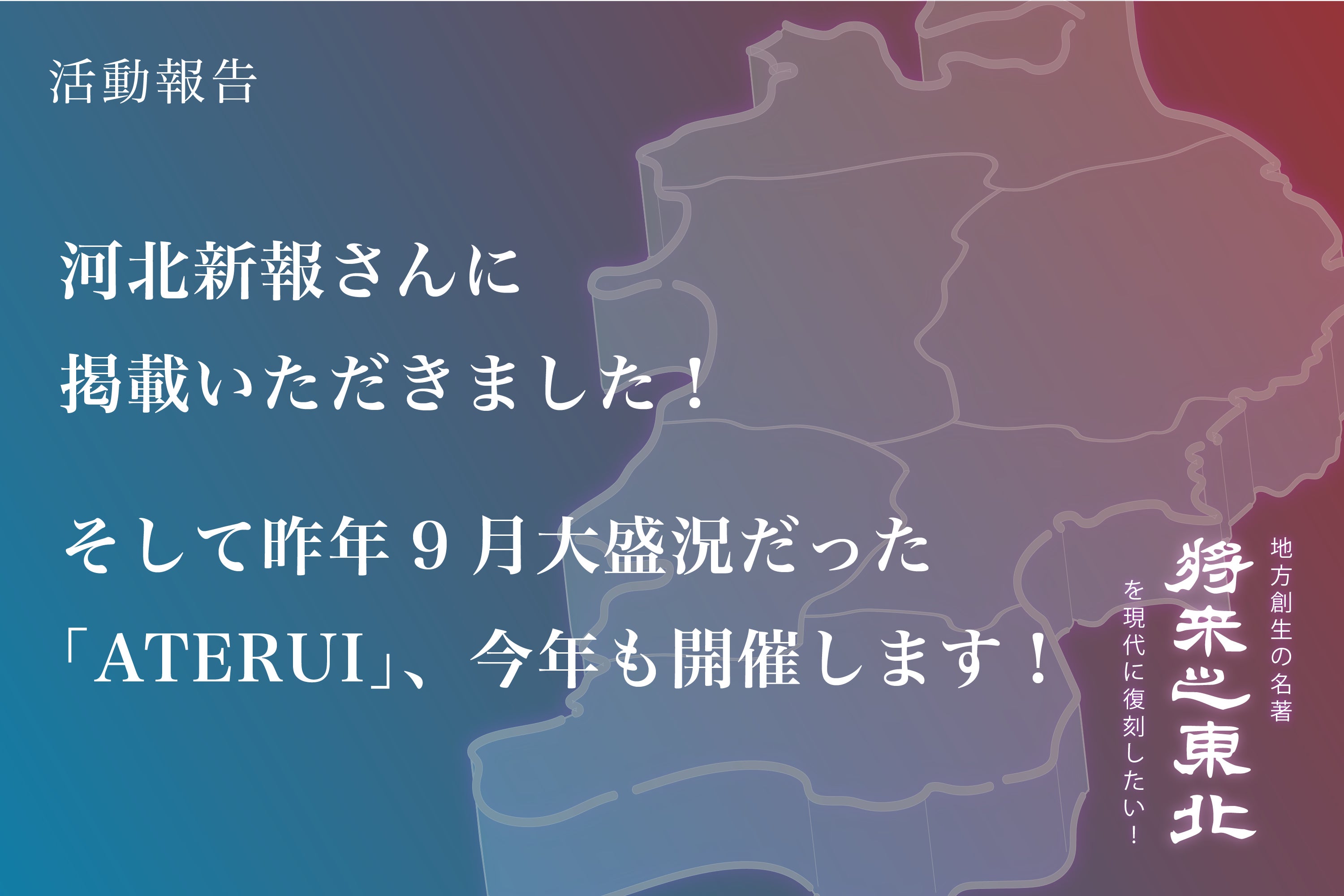 【将来之東北】河北新報さんに掲載いただきました!そして昨年9月大盛況だった「ATERUI」、今年も開催します!