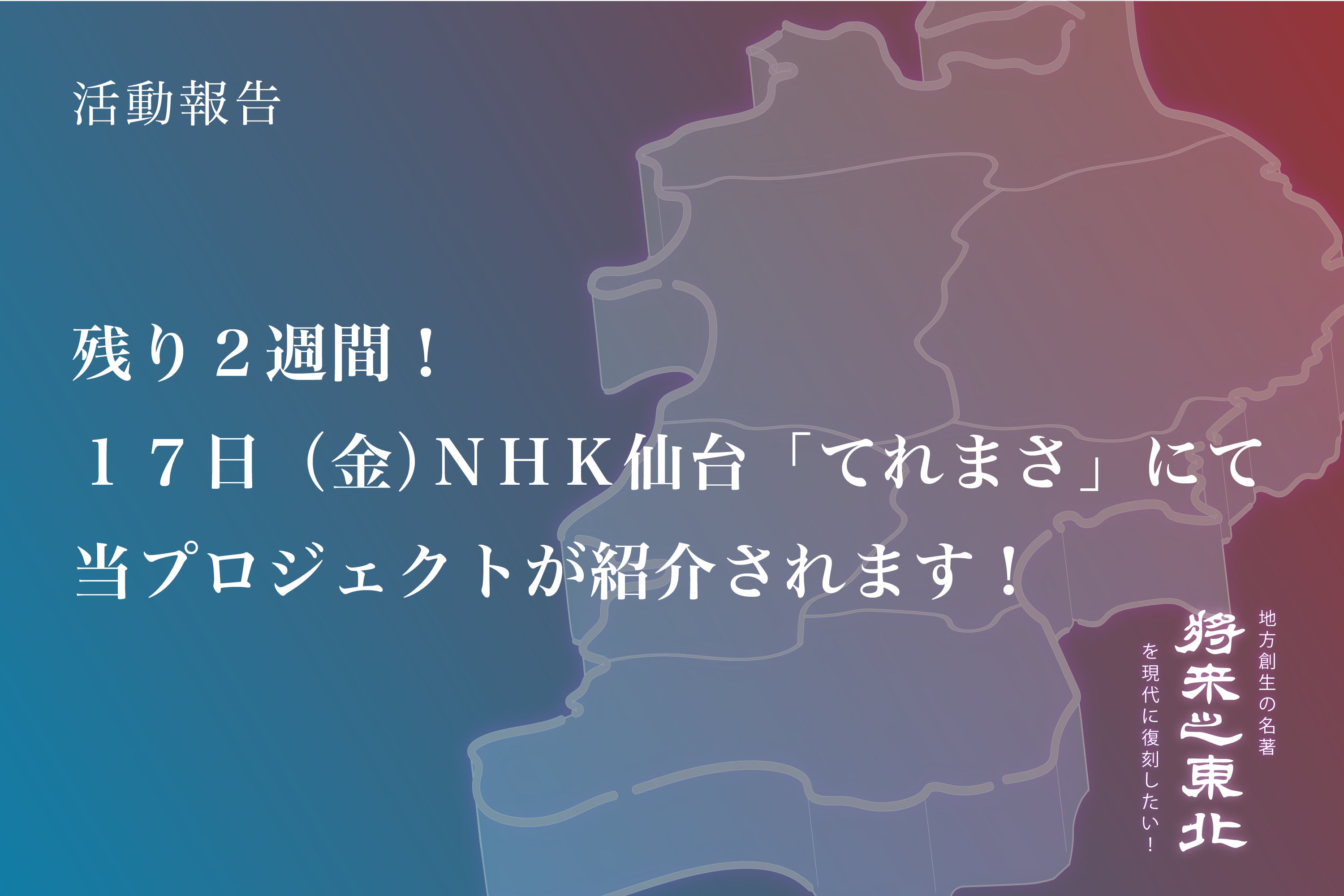 【将来之東北】残り2週間!17日(金)NHK仙台「てれまさ」にて当プロジェクトが紹介されます!