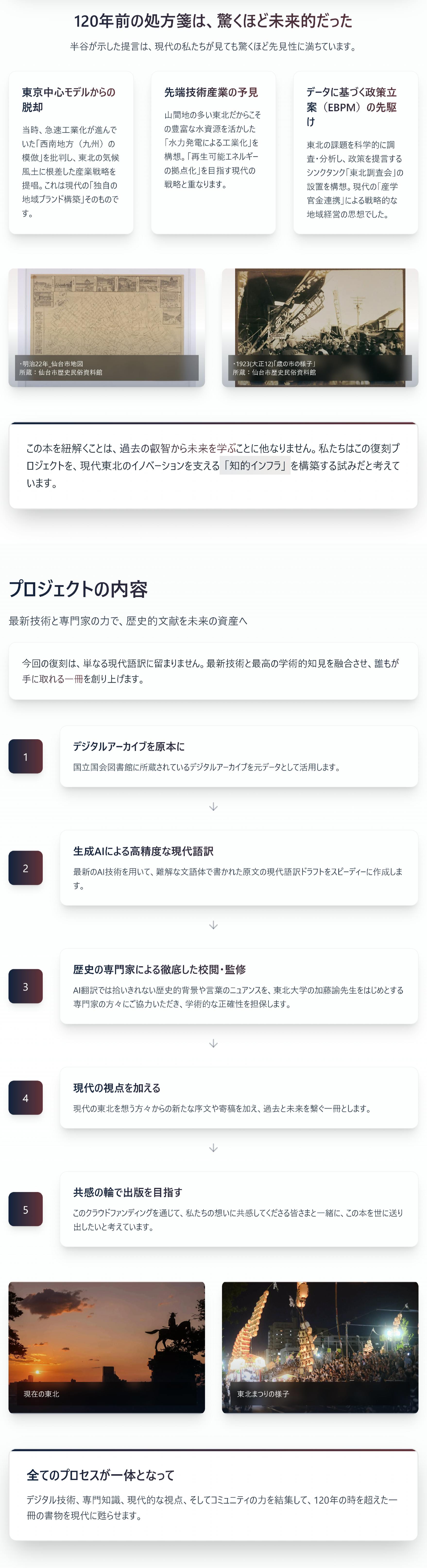 【書籍お届けコース】 ・完成した現代語訳版『将来之東北』(新書サイズ)を1冊お届け ・出版記念小冊子を1冊同封(冊子サイズ:B6、16ページを予定) ・福留よりお礼のメールと活動報告