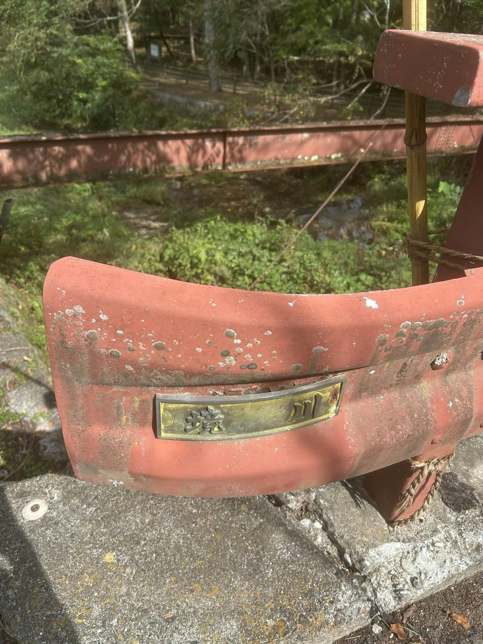 この赤い橋を渡り切った瞬間 ゴーンと 橋のガードレール見たくなっている部分を叩く音が。もちろんそばには誰もいないのに。