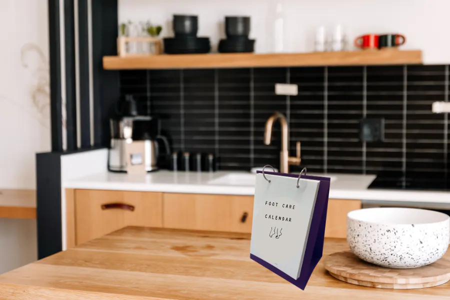 カレンダーを毎日必ず目にする場所に飾り、ながらで足裏ケアを習慣づけることが目標です!