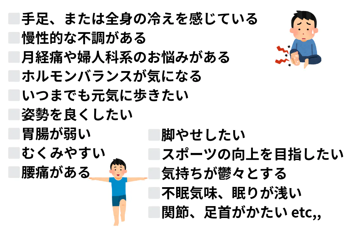 繰り返すぎっくり腰、月経痛、生活リズムの乱れ・・などから