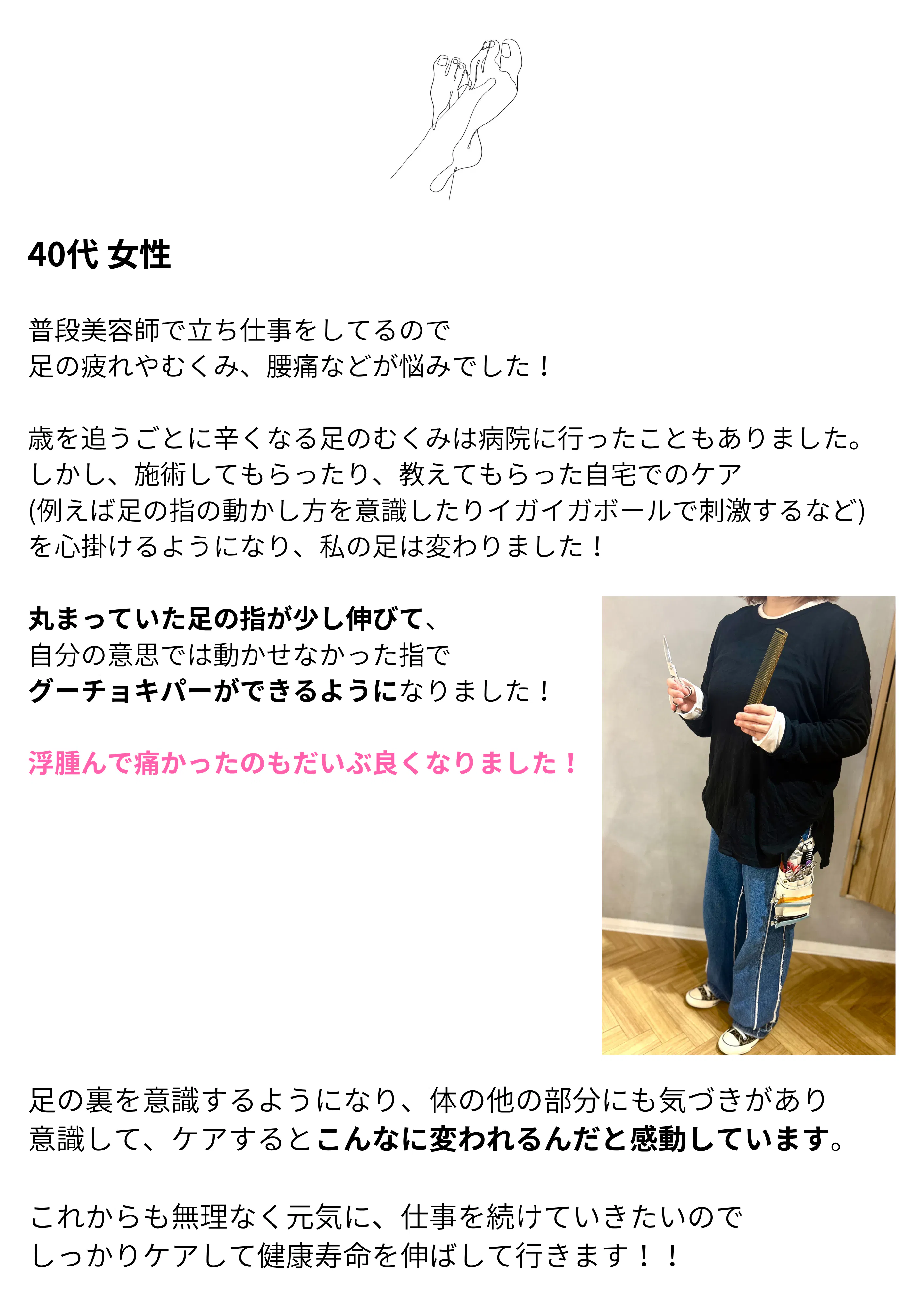 延べ3万人以上のお体と足の施術を担当させていただいています。