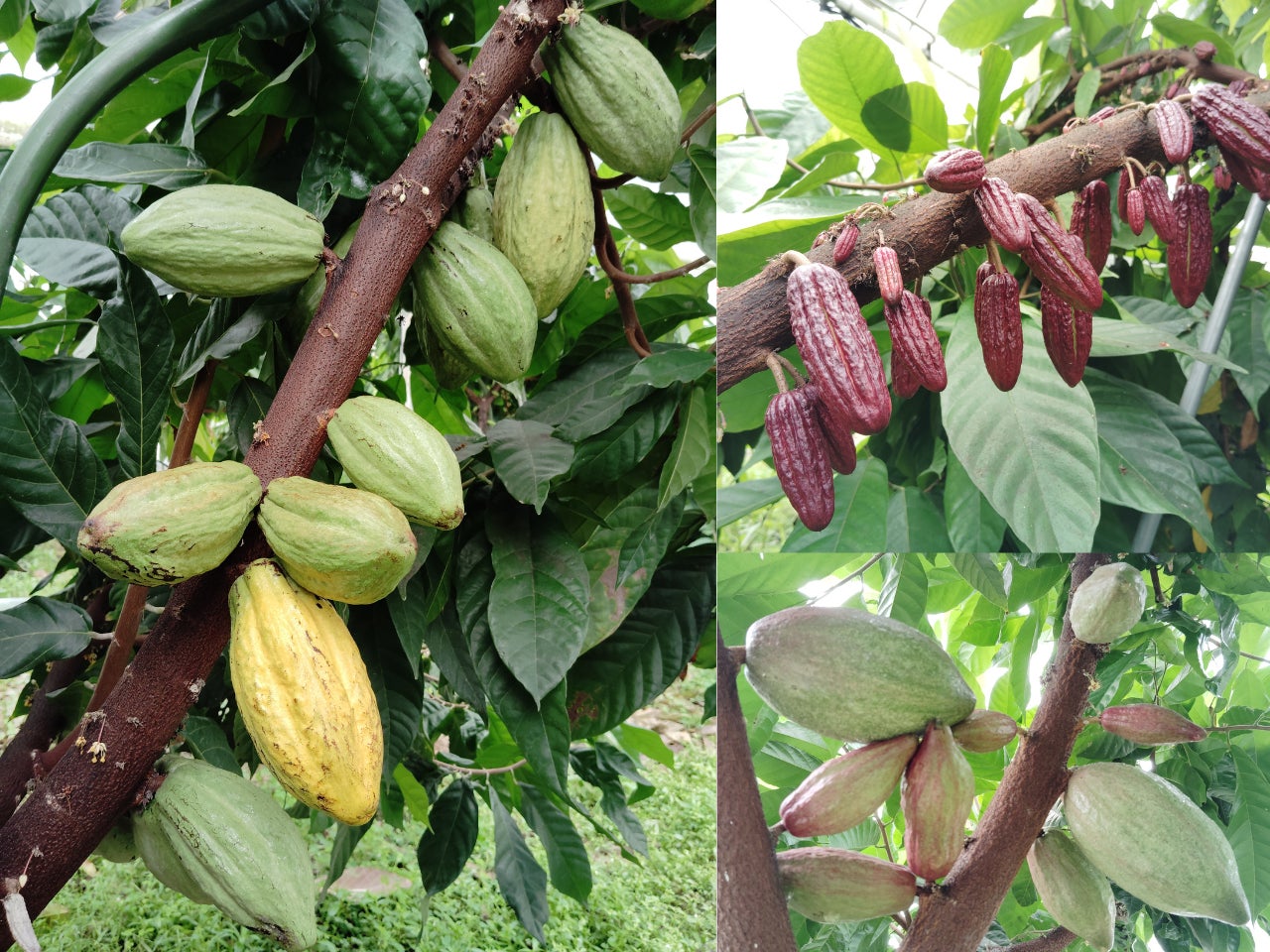 カカオには3万種類以上の品種があると言われており、農園内には20品種以上のカカオが育ち、品種によって果実の色や形が異なります。