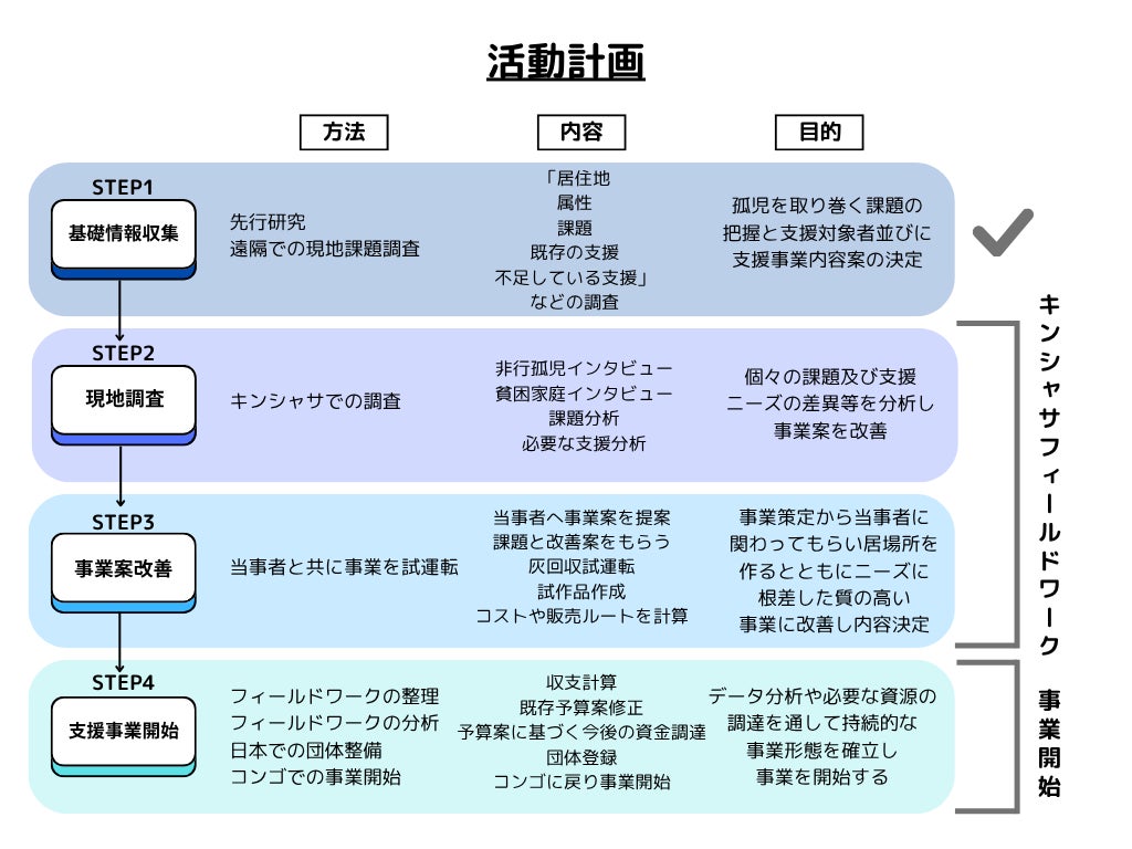 このプロジェクトはコンゴ民主共和国における孤児の課題改善の支援活動を始めるための